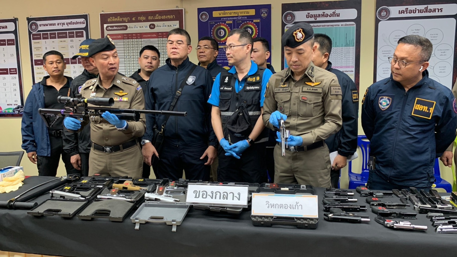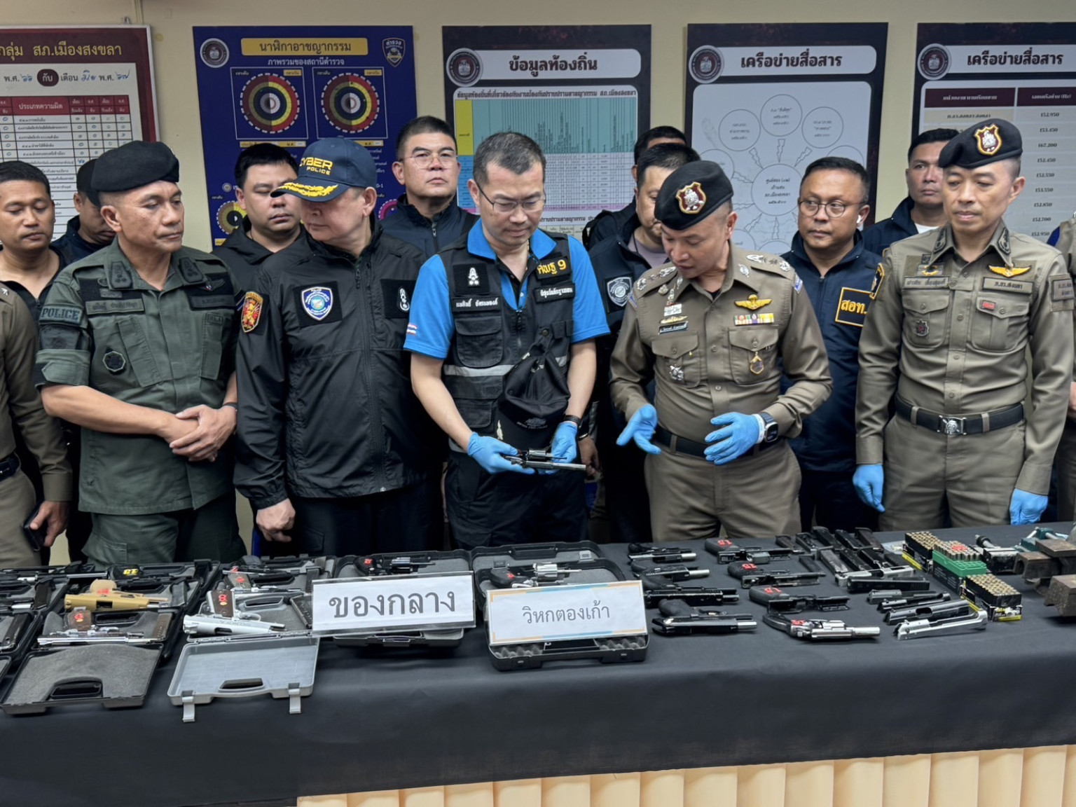 โดยจับกุมนายภัทรภณ อายุ 26 ปี นาย ศุภกฤษณ์ อายุ 22 ปี พร้อมอาวุธปืน 18 กระบอก อุปกรณ์ในการผลิตอาวุธปืน  ยาบ้า จํานวน 5 เม็ด ยาไอซ์ น้ําหนักประมาณ 1 กรัม เงินสด 4 หมื่นบาท แหวนทอง 2 วง รถกระบะจํานวน 1 คัน 3รถยนต์เก๋ง จํานวน 1 คัน  และรถจักรยานยนต์ จํานวน 3 คัน โดยจับกุมได้บ้านเลขที่ 429/66 หมู่ที่ 5 หมู่บ้านพราววิลเลจ การ์เด้นท์โฮม ต.พะวง อ.เมืองสงขลา จ.สงขลา