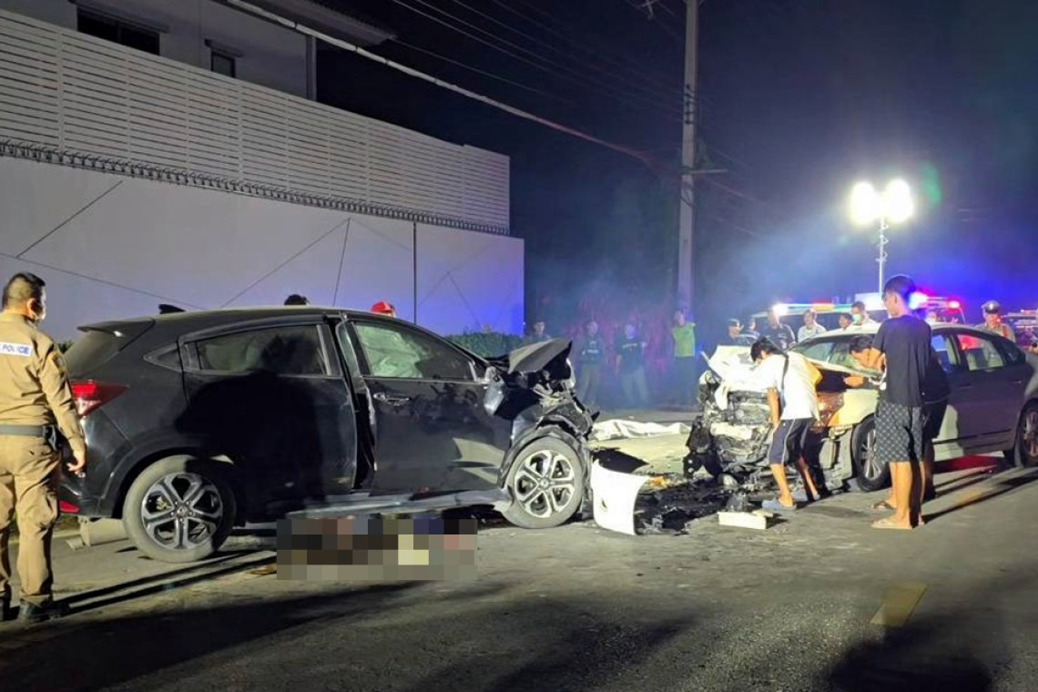 เมื่อวันที่ 11 ธ.ค.67 เวลา 20.00 น. สภ.บางแม่นาง จ.นนทบุรี ได้รับแจ้งอุบัติเหตุ รถยนต์ชนประสานงา มีผู้เสียชีวิต 1 ราย ได้รับบาดเจ็บ 3 ราย เหตุเกิดบริเวณถนนเลียบคลองถนน ก่อนถึงคลองประปา ต.บางแม่นาง อ.บางใหญ่ จ.นนทบุรี จึงพร้อมด้วยแพทย์จากสถาบันนิติวิทยาศาสตร์ และเจ้าหน้าที่อาสาสมัครมูลนิธิป่อเต็กตึ๊งรีบรุดตรวจสอบ