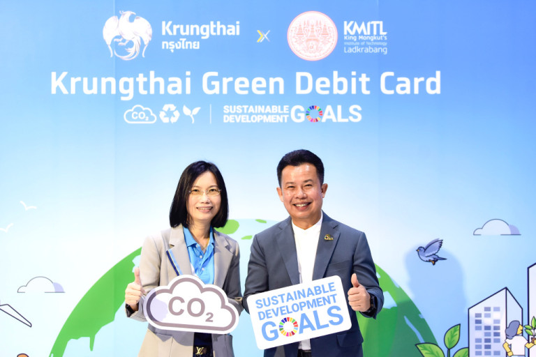 ธนาคารกรุงไทย ร่วมกับ สถาบันเทคโนโลยีพระจอมเกล้าคุณทหารลาดกระบัง (สจล.) เปิดตัว “Krungthai Green Debit Card” บัตรเดบิตใบแรกที่เปลี่ยนทุกการใช้จ่ายเป็นพลังสร้างการเปลี่ยนแปลงที่ดีต่อโลก ด้วยแนวคิด “ใช้จ่ายวันนี้ เพื่อวันพรุ่งนี้ที่ยั่งยืน” ตอบโจทย์คนรุ่นใหม่ ใส่ใจสิ่งแวดล้อม ใช้เทคโนโลยีสีเขียวและพลาสติกรีไซเคิลผลิตบัตรเพื่อเป้าหมาย Net Zero Emissions สร้างอนาคตแห่งความยั่งยืน