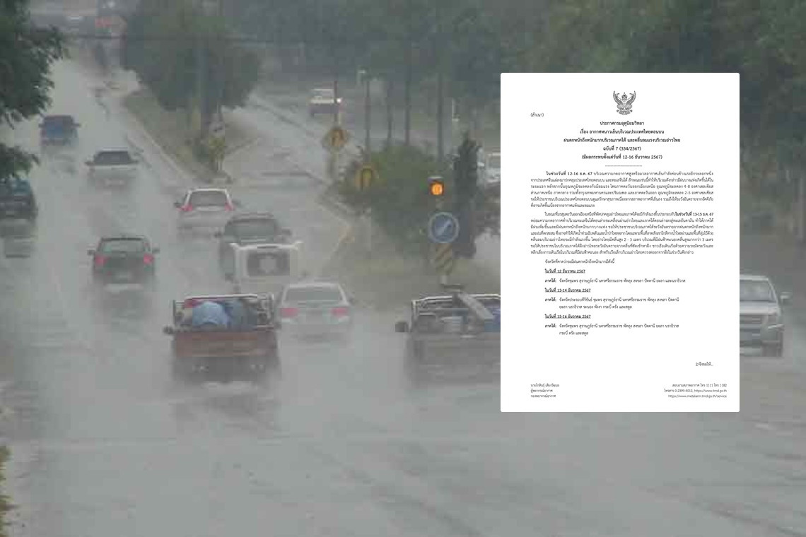 เมื่อเวลา 17.00 น. วันที่ 12 ธ.ค.2567 กรมอุตุนิยมวิทยา ประกาศกรมอุตุนิยมวิทยา เรื่อง อากาศหนาวเย็นบริเวณประเทศไทยตอนบน ฝนตกหนักถึงหนักมากบริเวณภาคใต้ และคลื่นลมแรงบริเวณอ่าวไทย ฉบับที่ 7 (334/2567) (มีผลกระทบตั้งแต่วันที่ 12-16 ธันวาคม 2567)