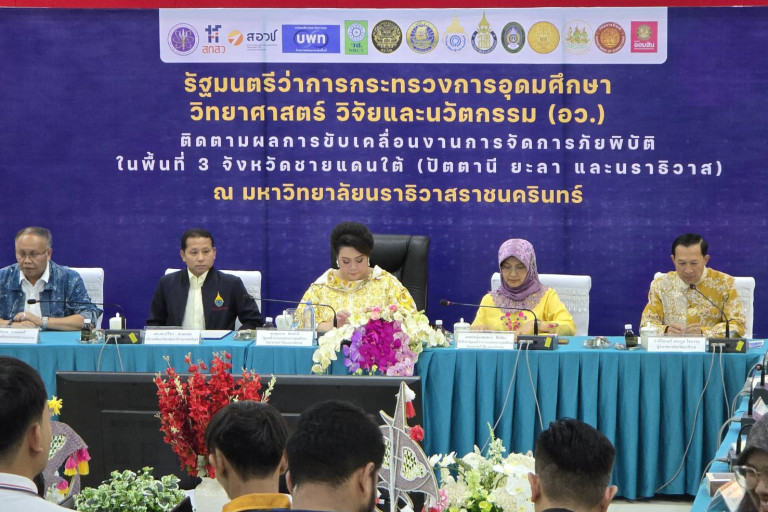 นางสาวศุภมาส อิศรภักดี รัฐมนตรีว่าการกระทรวงการอุดมศึกษา วิทยาศาสตร์ วิจัยและนวัตกรรม (อว.) นำคณะลงพื้นที่ตรวจเยี่ยมให้กำลังใจชาวบ้านที่ประสบวิกฤตอุทกภัย จังหวัดชายแดนใต้ พร้อมกับ แสดงความชื่นชมความเสียสละ ในการปฏิบัติงานของคณาจารย์ นักวิจัย นักศึกษา ตลอดจนบุคลากร 3 มหาวิทยาลัยในพื้นที่จังหวัดชายแดนใต้ ประกอบด้วย มหาวิทยาลัยสงขลานครินทร์ วิทยาเขตปัตตานี มหาวิทยาลัยราชภัฏยะลา และ มหาวิทยาลัยนราธิวาสราชนครินทร์ โดยกล่าวว่าพลังความรู้จากงานวิจัยของคณาจารย์ นักวิจัย ตลอดจนขุมพลังของบุคลากรทั้ง 3 มหาวิทยาลัยกว่า 3 หมื่นคน ที่เชื่อมโยงกับพลังภาคีเครือข่ายทุกภาคส่วนในพื้นที่ ภายใต้การจัดการอย่างเป็นระบบ ตามองค์ประกอบในแพลตฟอร์มสู้ภัยพิบัติ ที่ถูกยกระดับจากแพลตฟอร์มแก้ปัญหาความยากจนลดความเหลื่อมล้ำ ซึ่งทั้ง 3 มหาวิทยาลัยได้ร่วมมือกับหน่วยบริหารและจัดการทุนด้านการพัฒนาระดับพื้นที่ (บพท.) สำนักงานคณะกรรมการส่งเสริมวิทยาศาสตร์ วิจัยและนวัตกรรม (สกสว.) กระทรวง อว. ทำการศึกษาวิจัยและพัฒนาขึ้นในช่วงหลายปีที่ผ่านมา ทำให้ความเดือดร้อนของประชาชนที่ประสบวิกฤตอุทกภัยครั้งรุนแรงที่สุดในรอบหลายทศวรรษ ได้รับการบำบัด บรรเทาในเวลาอันรวดเร็ว และได้รับการฟื้นฟูเยียวยาอย่างฉับไว