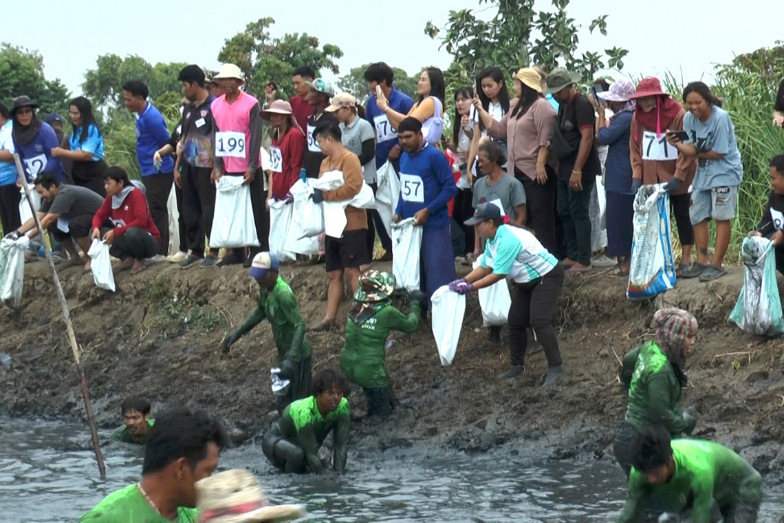ชาวบางบ่อแข่งจับปลานิลด้วยมือเปล่า