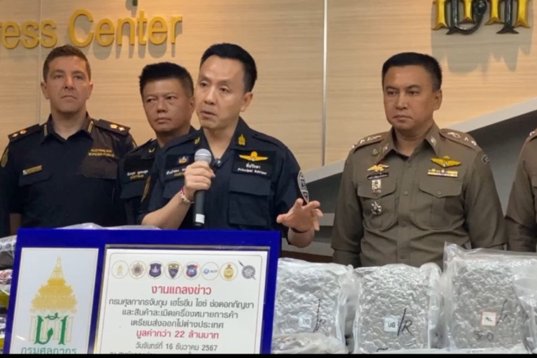 ท่าอากาศยานไทย จำกัด (มหาชน) และสำนักงานพิทักษ์เขตแดนแห่งออสเตรเลีย (Australian Border Force : ABF)ร่วมกันแถลงข่าว "ศุลกากรบูรณาการกับหน่วยงานที่เกี่ยวข้อง สกัดเฮโรอีน 21.8 กิโลฯ พร้อมตรวจยึดไอซ์ – ช่อดอกกัญชา และสินค้าละเมิดเครื่องหมายการค้าก่อนส่งออกนอกประเทศ" ณ ศูนย์แถลงข่าว อาคาร 1 ชั้น 2 กรมศุลกากร คลองเตย