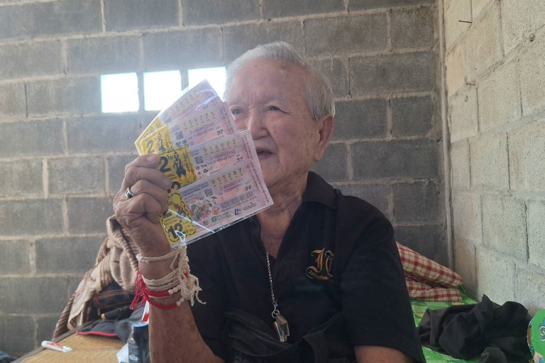 จากนั้นยายของน้องแบงค์ได้ควักเอาล็อตเตอร์ที่น้องแบงค์ซื้อให้ยายก่อนตายได้ 3 วัน มาให้ผู้สื่อข่าวดู จำนวน 3 คู่ 6 ใบ งวดวันที่ 2 ม.ค.68 มีเลขที่ลงท้ายด้วย 622 775 และ 337 โดยล็อตเตอร์รี่ที่ลงท้ายด้วย 337 เป็นเลขที่ตรงกันกับบ้านเลขที่ของลูกเขยพอดี ตอนท้ายยายบอกว่า น้องแบงค์ซื้อให้ 3 คู่ 6 ใบ และยายซื้ออีก 3 คู่ 6 ใบ รวมเป็นล็อตเตอร์รี่ 12 ใบ คุณยายก็ยังอารมณ์ดีบอกนักข่าวหากยายถูกรางวัลที่ 1 พรุ่งนี้มาหายายอีกได้นะ
