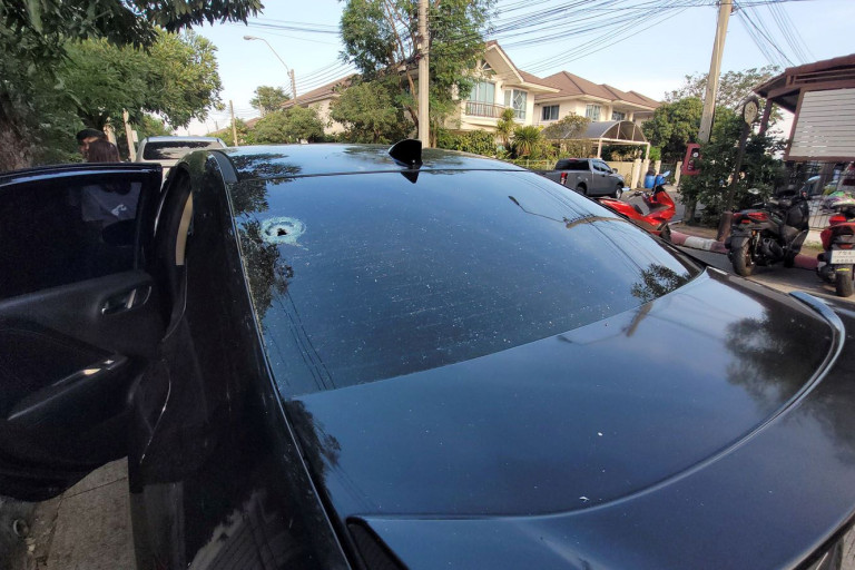 กระสุนปริศนาทะลุกระจกหลังรถเก๋งช่วงจุดพลุฉลองวันปีใหม่ย่านแพรกษา