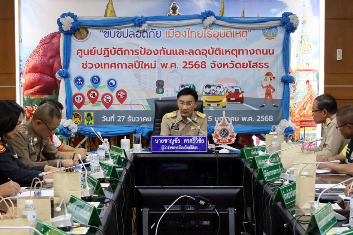 วันที่ 6 ม.ค.68 ที่ห้องประชุมสุนทรราชวงศา ชั้น 2 ศาลากลางจังหวัดยโสธรนายชาญชัย ศรศรีวิชัย ผู้ว่าราชการจังหวัดยโสธร ผู้อำนวยการความปลอดภัยทางถนนจังหวัดยโสธร เป็นประธานปิดศูนย์ป้องกันและลดอุบัติเหตุทางถนนช่วงเทศกาลปีใหม่ 2568 ซึ่งได้เปิดปฏิบัติการมาตั้งแต่วันที่ 27 ธ.ค.67 ถึงวันที่ 5 ม.ค.68 รวม 10 วันในช่วงควบคุมเข้มข้นและผลสรุปในการป้องกันและรถอุบัติเหตุทางถนนเทศกาลปีใหม่ 2568 จังหวัดยโสธรได้เกิดอุบัติเหตุ จำนวน 4 ครั้งและทำให้มีผู้ได้รับบาดเจ็บ 1 ราย และมีผู้เสียชีวิต 5 ราย
