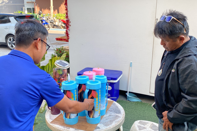 โดยก่อนหน้านี้ ตนพยายามนำถังดังกล่าว ไปทิ้งไว้ที่จุดทิ้งขยะ แต่พบว่าคนเก็บขยะปฏิเสธที่จะเก็บ เนื่องจากเกรงว่าจะเกิดการระเบิด จากการสังเกตการณ์ คาดว่าผู้ที่นำมาทิ้งน่าจะเป็นกลุ่มวัยรุ่นชาวจีน ที่เข้ามาพักอาศัยในคอนโด เนื่องจาก ก่อนหน้าที่พวกเขาจะเข้ามา ไม่เคยพบการทิ้งถังก๊าซหัวเราะในพื้นที่นี้มาก่อน