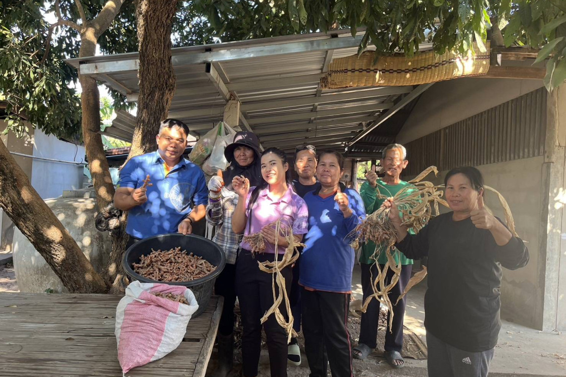เกษตรอำเภอป่าติ้วติดตามดูผลผลิตกลุ่มปลูกสมุนไพรตำบลกระจายจังหวัดยโสธร