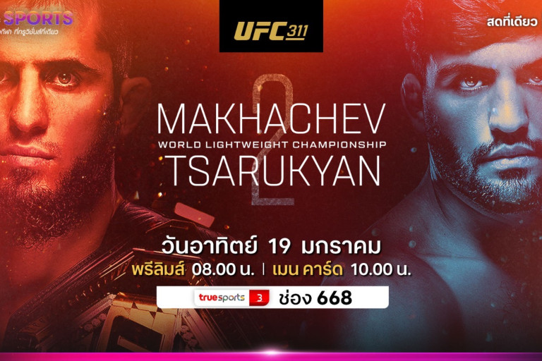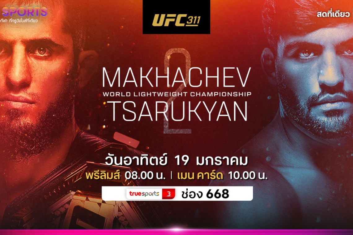 ยูเอฟซี ซูเปอร์ไฟต์ ประเดิมศักราชใหม่ 2025 กับความมันระดับโลก ยูเอฟซี 311 คู่เอก ชิงแชมป์รุ่นไลต์เวต ระหว่าง อิสลาม มาฮาเชฟ เจ้าของตำแหน่งจากแดนหมีขาวรัสเซีย ป้องกันแชมป์กับคู่ปรับเก่าสุดอันตรายอย่าง อาร์มาน ซารุคเกียน ผู้ท้าชิงจากอาร์เมเนีย ที่เป็นรองแชมป์อันดับ 1 และคู่เอกร่วมชิงแชมป์รุ่นแบนตั้มเวต ระหว่าง เมราบ ดิวาลิชวิลี่ แชมป์ชาวจอร์เจีย กับ อูมาร์ นอร์มาโกเมดอฟ ผู้ท้าชิงจากรัสเซีย ในฐานะรองแชมป์อันดับ 2