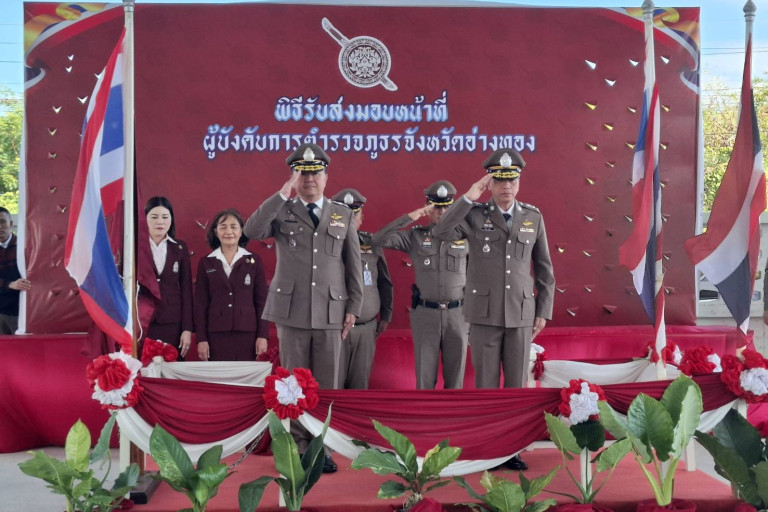 ตำรวจภูธรจังหวัดอ่างทอง จัดพิธีส่งมอบหน้าที่ ผู้บังคับการตำรวจ จ.อ่างทองคนใหม่ พร้อมสานต่อเพิ่มประสิทธิภาพข้าราชการ ตำรวจตามนโยบายผบ.ตร. เพื่อให้ประชาชนเชื่อมั่นศรัทธา