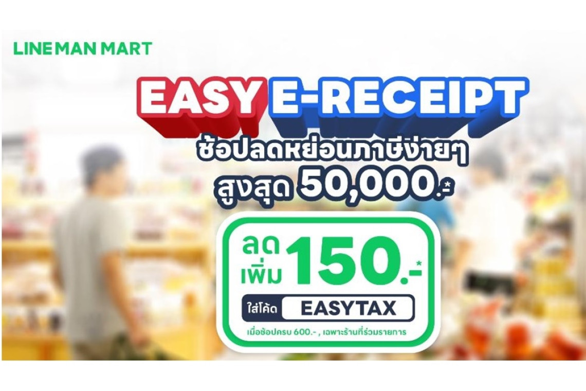 โครงการ Easy E-Receipt 2.0 บน LINE MAN MART เป็นการต่อยอดกระแสตอบรับที่ดีจากปีที่ผ่านมา ช่วยอำนวยความสะดวกให้ผู้ใช้ไม่พลาดโอกาสใช้สิทธิลดหย่อนภาษี นอกจากนี้ LINE MAN ยังมอบส่วนลดพิเศษให้กับทุกคนเพียงกรอกโค้ด EASYTAX รับส่วนลดเพิ่มทันที! สูงสุด 20% ใช้ได้ทั้งลูกค้าเก่าและลูกค้าใหม่ เมื่อสั่งขั้นต่ำ 600 บาท เริ่มวันที่ 16 ม.ค. ถึง 28 ก.พ68