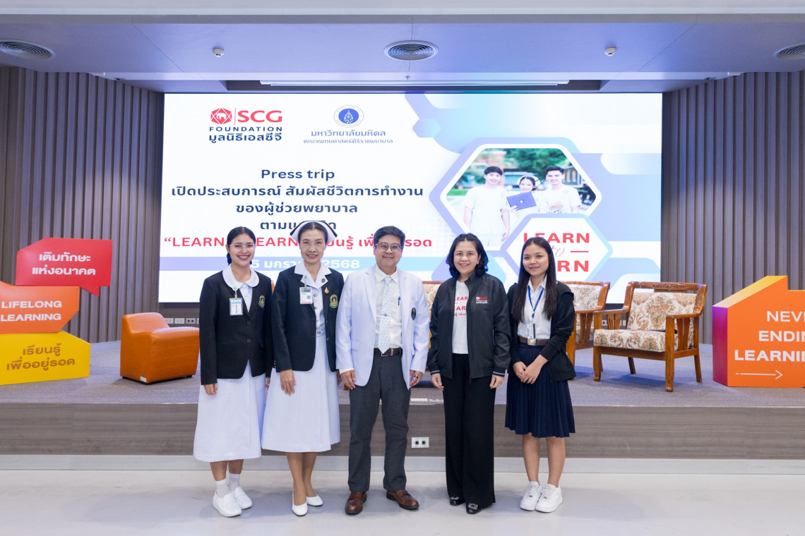มูลนิธิเอสซีจี เดินหน้าขยายแนวคิด Learn to Earn เรียนรู้เพื่ออยู่รอด ผ่านเวทีเสวนาสุดพิเศษนำโดย คุณสุวิมล จิวาลักษณ์ กรรมการและผู้จัดการ พร้อมด้วย คณะแพทยศาสตร์ศิริราชพยาบาล มหาวิทยาลัยมหิดล โดย รศ. นพ. ตรีภพ เลิศบรรณพงษ์ รองคณบดีฝ่ายการศึกษาก่อนปริญญา คุณรัชนีพร ภัทรปกรณ์ หัวหน้าโรงเรียนผู้ช่วยพยาบาล และนักเรียนทุน มูลนิธิเอสซีจี มาร่วมถ่ายทอดความสำคัญและความจำเป็นของการมีหลักสูตรผู้ช่วยพยาบาล และความมุ่งมั่นที่จะสนับสนุนเยาวชนไทยให้มีแนวคิด Learn to Earn เรียนรู้เพื่ออยู่รอด ด้วยการพัฒนาทักษะและประสบการณ์ในสายอาชีพทั้งทักษะวิชาชีพ (Hardskills) และทักษะชีวิต (Softskills) เพื่อให้สามารถใช้ชีวิตในโลกยุคที่มีการเปลี่ยนแปลงอย่างรวดเร็วตลอดเวลาได้อย่างยั่งยืนและมั่นคง จากนั้นจึงเป็นการสาธิตการทำงานและหน้าที่ของผู้ช่วยพยาบาลในการดูแลผู้ป่วย โดยการสาธิต 3 ฐาน คือการอาบน้ำเด็กแรกเกิด การให้อาหารผู้ป่วยทางสายยาง และการดูแลผู้ป่วยหลังผ่าตัด