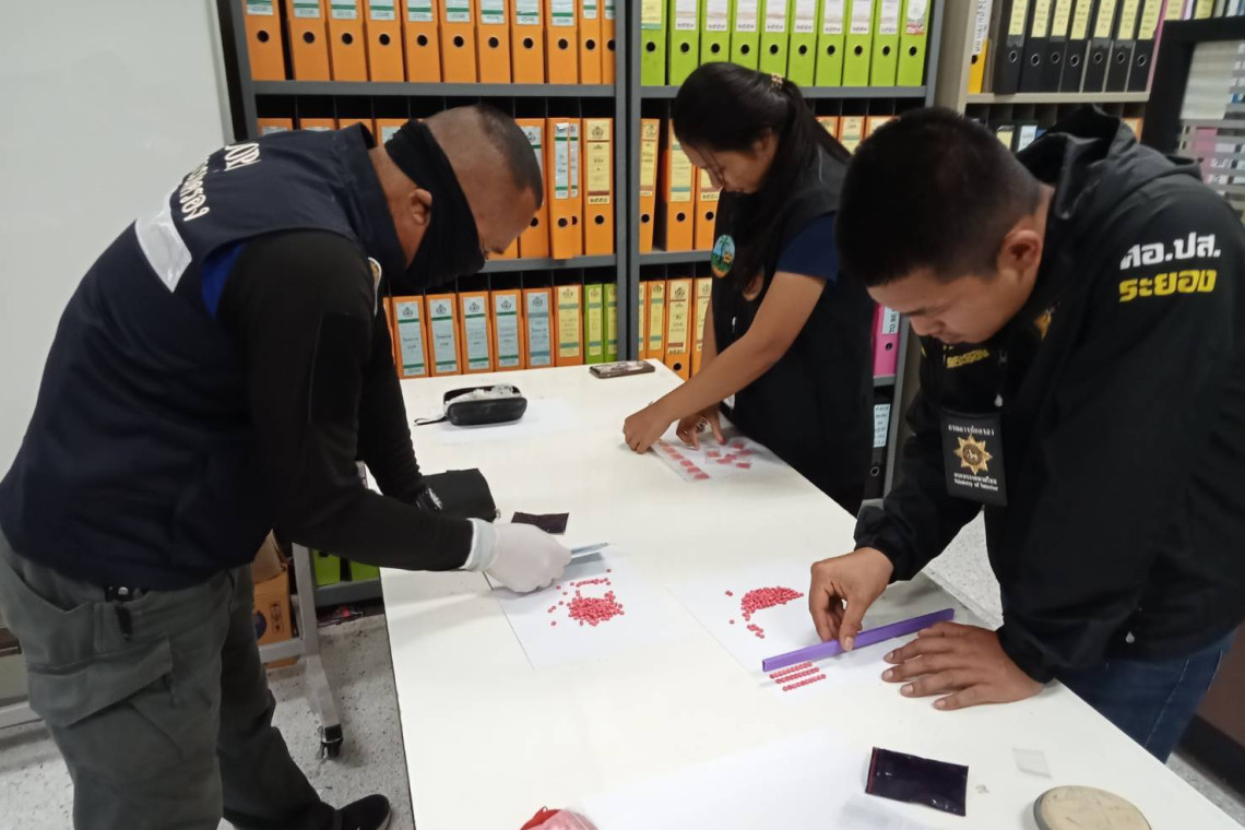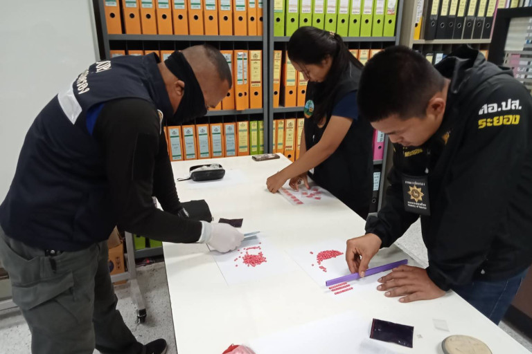 เมื่อเวลา 13.00 น.วันที่ 22 ม.ค.68 นายไตรภพ วงศ์ไตรรัตน์ ผวจ.ระยอง พร้อมด้วยนายกำธร เวหน รอง ผวจ.ระยอง นายเรืองฤทธิ์ ประกอบธรรม ปลัดจังหวัดระยอง นายทัศนเดชา บุญสนธิ์ ป้องกันจังหวัดระยอง นายไกรยุทธ วิลาวัลย์ เจ้าพนักงานปกครองชำนาญการ นายอนุรักษ์ สกุลพิทักษ์ เจ้าพนักงานปกครองชำนาญการ ฝ่ายปกครองจังหวัดระยอง นายปิยวัฒน์ วัชรเมฆินทร์ เจ้าพนักงานปกครองปฏิบัติการ ชุดเฉพาะกิจปกครองจังหวัดระยอง ชุดปฏิบัติการพิเศษฝ่ายความมั่นคงจังหวัดระยอง จนท.กองร้อยอส. จังหวัดระยอง ร่วมกันจับกุม นายสมศักดิ์ หรือเหน่ง อายุ 49 ปี ชาวระยอง พร้อมด้วยของกลาง ยาบ้า จำนวน 634 เม็ด รถยนต์ ยี่ห้อ HONDA รุ่น CITY สีเทา ทะเบียน xxxx ชลบุรี ผลตรวจปัสสาวะฉี่สีม่วง 1 ใบ