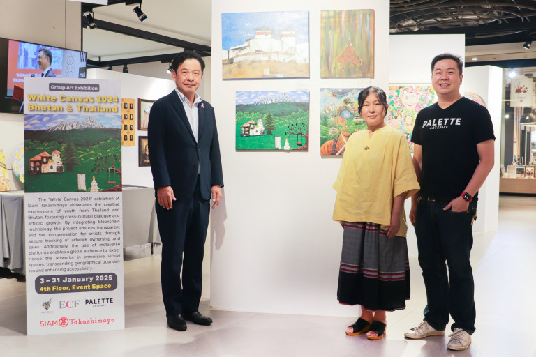 สยาม ทาคาชิมายะ ห้างสรรพสินค้าญี่ปุ่นขนานแท้แห่งเดียวในประเทศไทย ณ ไอคอนสยาม ร่วมกับ พาเลท อารต์สเปช แกลลอรี่แสดงผลงานศิลปะชั้นนำของไทย และมูลนิธิวัฒนธรรมตะวันออก (ECF) ขอเชิญทุกท่านร่วมสัมผัสประสบการณ์ศิลปะอันทรงคุณค่าในนิทรรศการกลุ่ม "White Canvas 2024 ภูฏาน & ไทย" ระหว่างวันที่ 3 – 31 มกราคม 2568 ณ อีเว้นท์ สเปซ ชั้น 4 สยาม ทาคาชิมายะ นิทรรศการเสนอผลงานสร้างสรรค์ของเยาวชนไทยและภูฏานกว่า 80 ชิ้น ที่ผ่านเข้ารอบจากการประกวน White Canvas ประจำปี 2024 โดดยผลงานเป็นการสะท้อนถึงการเติบโตทางความคิดและจินตนาการอันไร้ขีดจำกัด ผ่านเทคนิคที่หลากหลาย อาทิ ลายเส้น สีน้ำ อะคริลิค และสีน้ำมัน นิทรรศการนี้ไม่เพียงแต่เป็นการจัดแสดงผลงานศิลปะ แต่ยังเป็นการเชื่อมโยงความสัมพันธ์ทางวัฒนธรรมระหว่างสองประเทศ และส่งเสริมศักยภาพของศิลปินรุ่นใหม่ พร้อมเชื่อมโยงเทคโนโลยีดิจิทัลเข้ากับงานศิลปะ ผู้ชมจะได้สัมผัสประสบการณ์ใหม่ผ่านแพลตฟอร์มที่ติดตามกระบวนการสร้างสรรค์ผลงาน และเปิดโอกาสให้เข้าถึงงานศิลปะในรูปแบบ Metaverse ที่จะนำผู้ชมไปสู่โลกเสมือนจริงที่ไร้ขอบเขตทางภูมิศาสตร์ ทำให้ผู้ชมทั่วโลกสามารถเข้าถึงและชื่นชมงานศิลปะได้อย่างไร้ขีดจำกัด