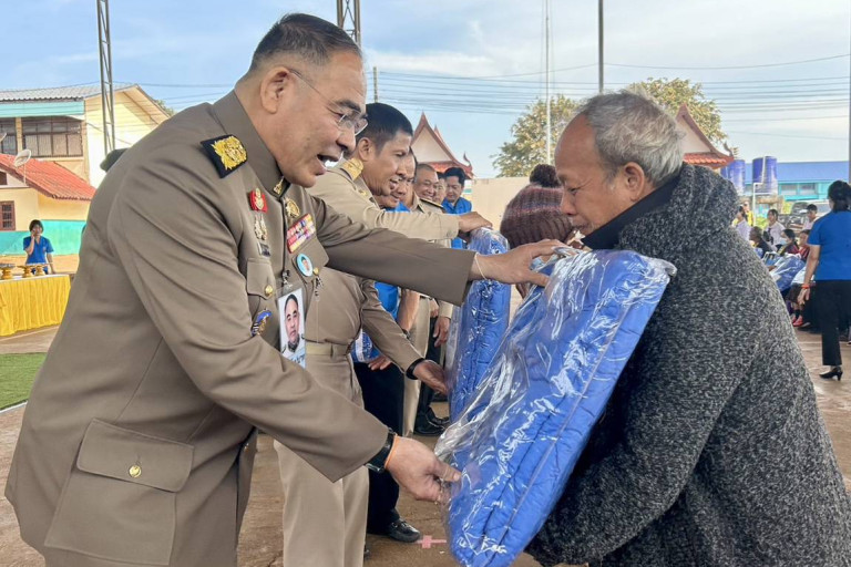 เมื่อวันที่ 23 มกราคม 2568 เวลา 11.52 น. ที่โดมอเนกประสงค์ องค์การบริหารส่วนตำบลโกรกพระ อำเภอโกรกพระ จังหวัดนครสวรรค์ พระบาทสมเด็จพระเจ้าอยู่หัว ทรงพระกรุณาโปรดเกล้าโปรดกระหม่อมให้ พลเอก กัมปนาท รุดิษฐ์ องคมนตรี ที่ปรึกษากิตติมศักดิ์มูลนิธิราชประชานุเคราะห์ ในพระบรมราชูปถัมภ์ เชิญผ้าห่มกันหนาว กับชุดยาและเวชภัณฑ์พระราชทาน จำนวน 3,000 ชุด ไปมอบแก่ผู้ประสบภัยหนาวในพื้นที่จังหวัดนครสวรรค์ โดยมอบแก่ผู้ว่าราชการจังหวัด นายอำเภอ ซึ่งเป็นตัวแทนราษฎรผู้ประสบภัยหนาว เพื่อเชิญไปมอบแก่ราษฎรในพื้นที่ต่อไป และมอบแก่ราษฎรผู้ประสบภัยหนาวในพื้นที่อำเภอโกรกพระ เพื่อบรรเทาความเดือดร้อนจากสภาพอากาศที่หนาวเย็น และเป็นขวัญกำลังใจ