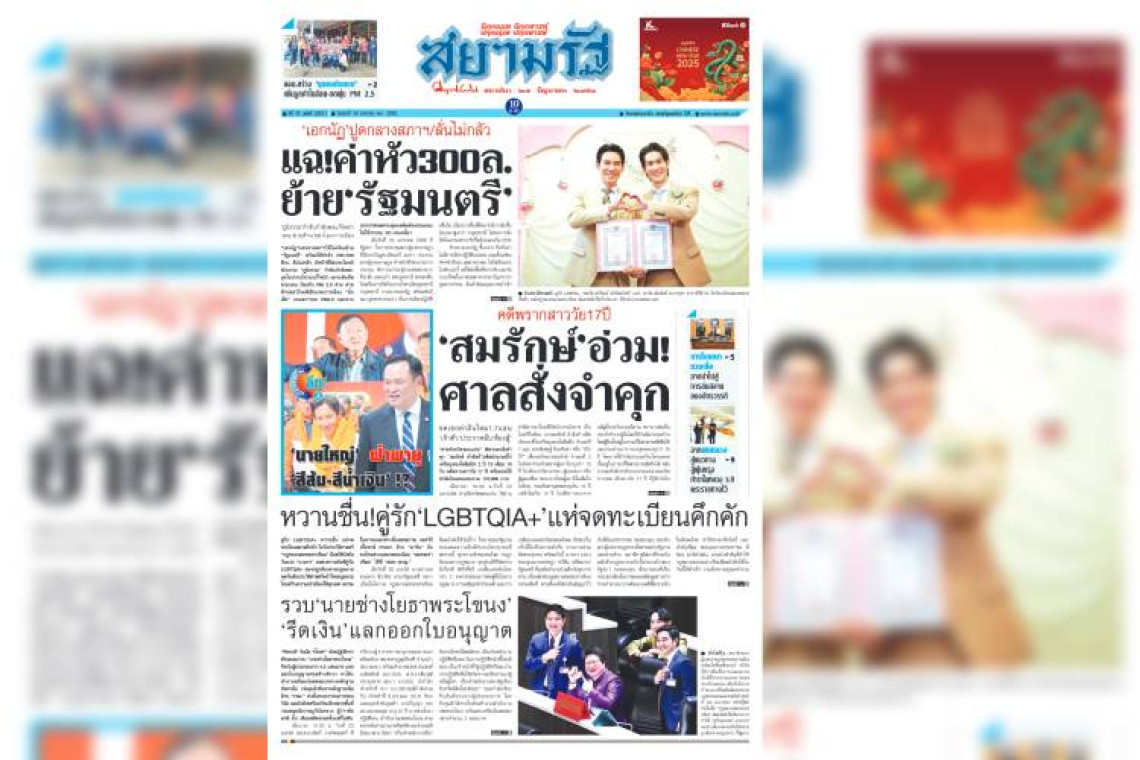 หน้า 1 หนังสือพิมพ์สยามรัฐรายวัน ฉบับวันศุกร์ที่ 24 มกราคม 2568