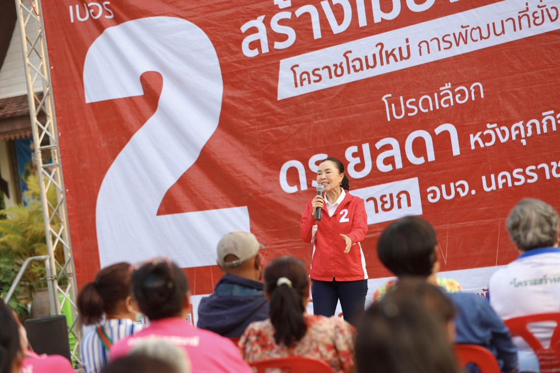 เมื่อวันที่ 25 มกราคม นางยลดา หวังศุภกิจโกศล หรือ “มาดามหน่อย” อดีตนายก ภริยา “กำนันป้อ” นายวีรศักดิ์ อดีต รมช.คมนาคม และเป็นแม่นางสาวสุดาวรรณ รมว.วัฒนธรรม บ้านใหญ่เสิงสาง ผู้สมัครนายก อบจ.นครราชสีมา เบอร์ 2 พรรคเพื่อไทย ลงพื้นที่พบปะพูดคุยกับพี่น้องประชาชนเขตอำเภอเมืองนครราชสีมา 2 เวที ได้แก่ วัดกองพระทราย ต.ในเมือง และ วัดยางใหญ่ ต.สุรนารี อ.เมือง นครราชสีมา เพื่อปราศรัยชี้แจงนโยบายต่างๆ พัฒนาเมืองโคราชแบบก้าวกระโดด โดยเฉพาะการสร้างคน สร้างเศรษฐกิจ สร้างเมืองโคราช สานต่อการพัฒนาทุกด้าน ทุกมิติ อย่างยั่งยืน