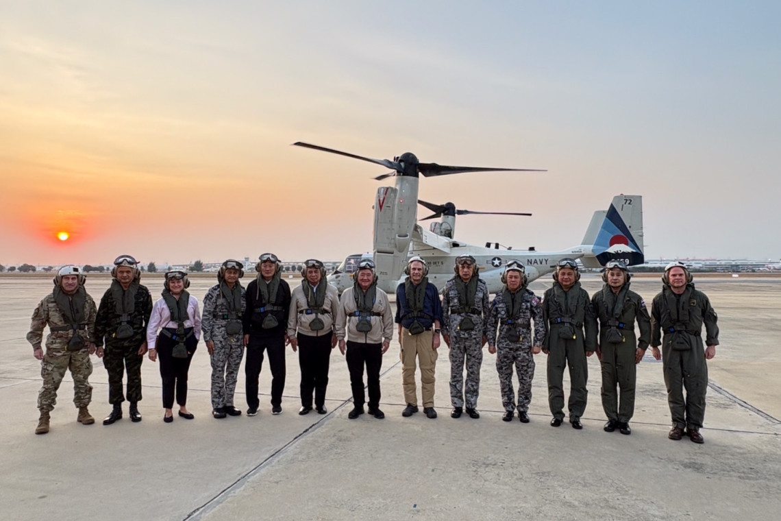 นาย Robert F Gordec เอกอัครราชทูตสหรัฐประจำประเทศไทย พลเรือตรี Michael S. Wosje ผู้บัญชาการกองเรือบรรทุกเครื่องบินโจมตีที่ 1 และนาวาเอก Matthew C. Thomas ผู้บัญชาการเรือ USS Carl Vinson ต้อนรับ.โดยให้ดูใกล้ๆ การขึ้นบินของ F/A 18 E Hornetจาก เรือบรรทุกเครื่องบิน USS Carl Vinson และ การบินขึ้นลงของเครื่องบินF35