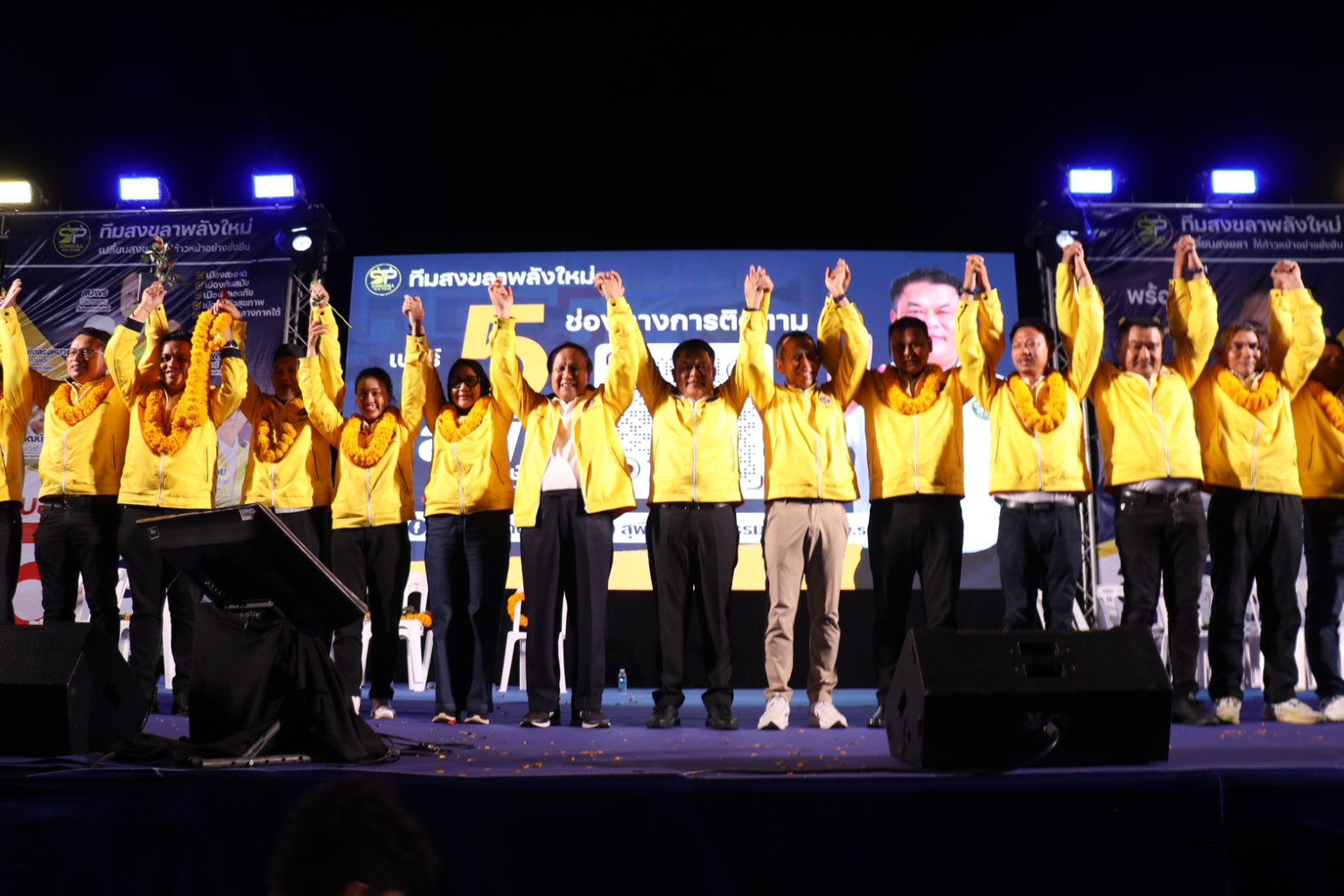 เมื่อวันที่ 26 ม.ค.68 ที่ สวนสาธารณะอำเภอเมืองสงขลา นายสุพิศ พิทักษ์ธรรม ทีมสงขลาพลังใหม่ พร้อมทีมบริหาร ทั้งนายสมพร ใช้บางยาง นายอับดลรอหมาน กาเหย็ม นางสาวปรินดา ปาลาเร่ นายฉัตรเพชร ครุอำโพธิ์ ขึ้นเวทีสลับกันเรียกคะแนนชูนโยบายเด่นปักหมุดยุทธศาสตร์ ”เสน่ห์เมืองพหุวัฒธรรม“