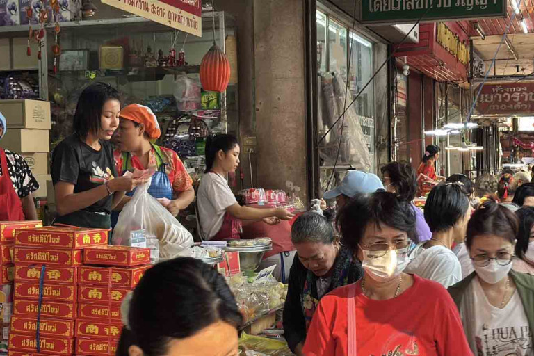 บรรยากาศวันจ่ายเช้าวันนี้ก่อนถึงช่วงเทศกาลตรุษจีน ที่ตลาดปากน้ำ จังหวัดสมุทรปราการ มีชาวไทยเชื้อสายจีนออกมาหาซื้อสิ่งของประกอบการไหว้เจ้าในวันตรุษจีนกันบางตา ไม่มากเท่าปีก่อน ทั้งพ่อค้าแม่ค้าที่นำสินค้าอาหารสด ผลไม้ ขนมเทียน ขนมเข่ง ขนมปุยฝ้าย ไก่ต้ม เป็ดพะโล้ มาขายจำนวนมาก และชาวไทยเชื้อสายจีนก็นิยมมาเลือกซื้อสินค้าในวันนี้ แม้ว่าปีนี้ สินค้าหลายชนิดต้นทุนปรับตัวสูงขึ้น ทำให้บรรยากาศเมื่อเทียบกับปีที่ผ่านมาไม่คึกคักมากนัก จากการพูดคุยกับชาวบ้าน บอกว่า ปีนี้ของแพงขึ้นพอสมควร จึงจำเป็นต้องลดการซื้อของที่ไม่จำเป็นลง