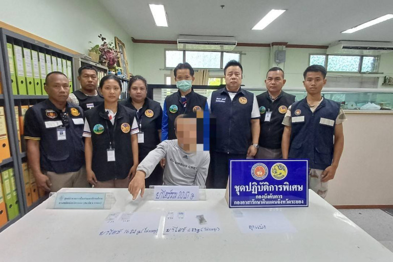 วันที่ 29 ม.ค.68 เวลา 14 .00 น.นายไตรภพ วงศ์ไตรรัตน์ ผวจ.ระยองพร้อมด้วยนายกำธร เวหน รองผู้ว่าฯ นายเรืองฤทธิ์ ประกอบธรรม ปลัดจังหวัดระยอง นายทัศนเดชา บุญสนธิ์ ป้องกันจังหวัดระยอง นายไกรยุทธ วิลาวัลย์ เจ้าพนักงานปกครองชำนาญการ นายอนุรักษ์ สกุลพิทักษ์ เจ้าพนักงานปกครองชำนาญการ นายปิยวัฒน์ วัชรเมฆินทร์ เจ้าพนักงานปกครองปฏิบัติการ ชุดปฏิบัติการพิเศษฝ่ายความมั่นคงจังหวัดระยอง ชุดเฉพาะกิจปกครองจังหวัดระยอง เจ้าหน้าที่ตำรวจชุดปฏิบัติการพิเศษสภ.เมืองระยอง และเจ้าหน้าที่กองร้อย อส. จังหวัดระยอง ร่วมกันเข้าจับกุม นายวชิรวิชญ์ หรือ จุ๊ อายุ 34 ปี ชาวระยอง พร้อมด้วยของกลางยาไอซ์ 11.81 กรัม อุปกรณ์เสพยา และผลตรวจปัสสาวะฉี่สีม่วง 1 ใบ
