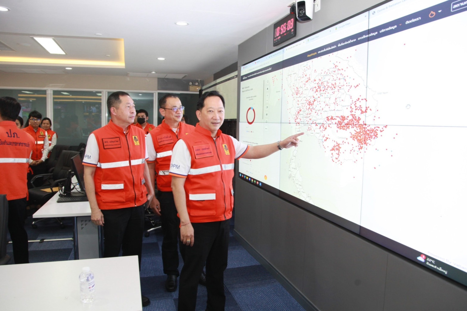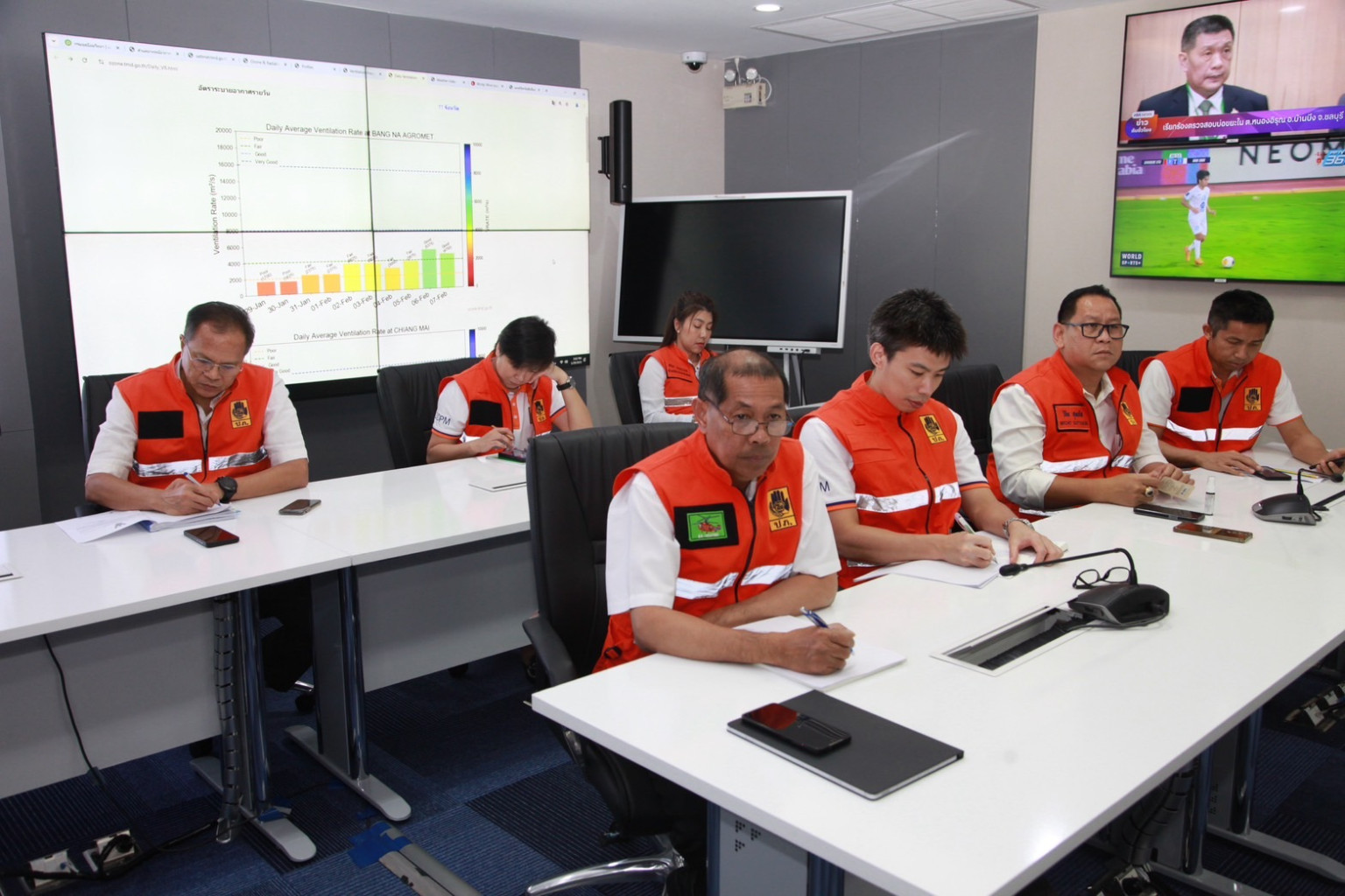 นายภาสกร บุญญลักษม์ อธิบดีกรมป้องกันและบรรเทาสาธารณภัย (ปภ.) ในฐานะผู้อำนวยการกลาง/เลขานุการกองบัญชาการป้องกันและบรรเทาสาธารณภัยแห่งชาติ เปิดเผยว่า นายกรัฐมนตรีห่วงใยต่อสถานการณ์ฝุ่นละอองขนาดเล็ก (PM2.5) ที่พบค่าฝุ่นเกินมาตรฐานในระดับที่ส่งผลผลกระทบต่อสุขภาพของประชาชน กระจายอยู่ทั่วทุกภาคของประเทศ โดยเฉพาะในพื้นที่กรุงเทพมหานครและปริมณฑล และได้สั่งให้ยกระดับ 6 มาตรการป้องกันและแก้ไขปัญหาไฟป่า หมอกควัน และฝุ่น PM2.5 ให้เป็นวาระแห่งชาติ ที่ทุกส่วนราชการต้องให้ความสำคัญกับภารกิจนี้ โดยได้แต่งตั้งนายภูมิธรรม เวชยชัย รองนายกรัฐมนตรีและรัฐมนตรีว่าการกระทรวงกลาโหม นายประเสริฐ จันทรรวงทอง รองนายกรัฐมนตรีและรัฐมนตรีว่าการกระทรวงดิจิทัลเพื่อเศรษฐกิจและสังคม และนายจิรายุ ห่วงทรัพย์ ที่ปรึกษาของนายกรัฐมนตรี และโฆษกประจำสำนักนายกรัฐมนตรี เป็นที่ปรึกษากองบัญชาการป้องกันและบรรเทาสาธารณภัยแห่งชาติ โดยเมื่อช่วงเช้าของวันนี้ นายอนุทิน ชาญวีรกูล รองนายกรัฐมนตรีและรัฐมนตรีว่าการกระทรวงมหาดไทยในฐานะผู้บัญชาการกองบัญชาการป้องกันและบรรเทาสาธารณภัยแห่งชาติ ได้เปิดกองบัญชาการป้องกันและบรรเทาสาธารณภัยแห่งชาติ (บกปภ.ช.) และสั่งการให้ทุกภาคส่วนบูรณาการและขับเคลื่อนการปฏิบัติงาน ตามข้อสั่งการของนายกรัฐมนตรี ภายใต้กฎหมายตามพระราชบัญญัติป้องกันและบรรเทาสาธารณภัย พ.ศ. 2550