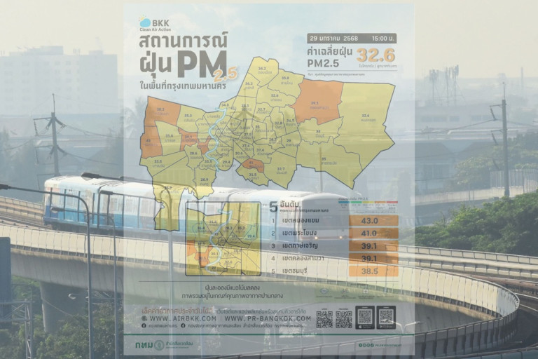 🔍ค่าเฉลี่ยของกรุงเทพมหานคร 32.6 ไมโครกรัมต่อลูกบาศก์เมตร (มคก./ลบ.ม.)