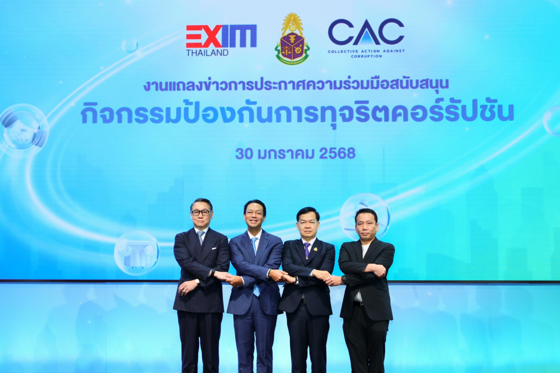 EXIM BANK จับมือสำนักงาน ป.ป.ช. และ CAC เปิดตัวนวัตกรรมทางการเงินด้านธรรมาภิบาลครั้งแรกของโลก เสริมสภาพคล่องและลดต้นทุนทางธุรกิจแก่ผู้ประกอบการไทยที่ได้มาตรฐานสากล