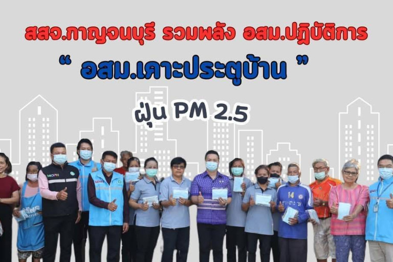 สสจ.กาญจนบุรี รวมพลัง อสม.ปฏิบัติการ “อสม.เคาะประตูบ้าน” เป็นแกนนำสุขภาพ ติดตาม ดูแล ปชช. และร่วมป้องกันฝุ่น PM2.5