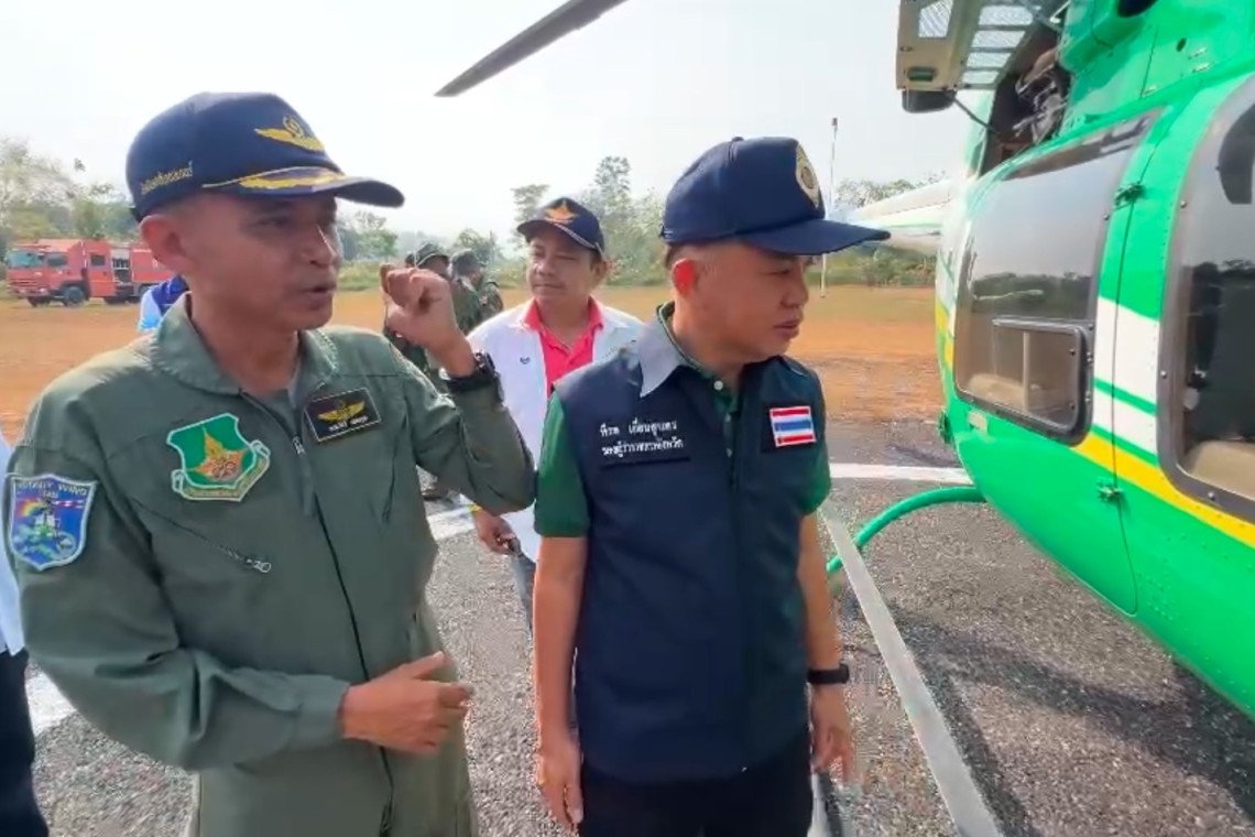 ผู้ว่าฯตราดพร้อมนายอำเภอเมืองขึ้นฮ.ตรวจพื้นที่ไฟไหม้ชายแดนหลังลุกลาม พบค่าPM2.5 ขึ้นสูงติดอันดับประเทศ นักบินเผยขึ้นบินอันตรายเข้าเขตชด.กพ.
