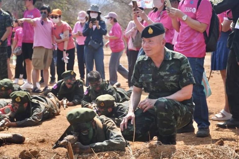 พล.ท. ทวีพูล ริมสาคร ผู้บัญชาการหน่วยบัญชาการรักษาดินแดน (ผบ.นรด.) พร้อม พล.ต.นิธิ รัตนะวรรธนะ ผู้บัญชาการศูนย์การนักศึกษาวิชาทหาร (ผบ.ศศท.) พบปะ พ่อแม่ผู้ปกครองของ นักศึกษาวิชาทหาร (นศท.) ที่มาฝึกภาคสนาม ที่ค่ายฝึก นศท. เขาชนไก่ ในกิจกรรม Open House ตอน Check In เขาชนไก่ ที่ค่ายฝึก นศท. เขาชนไก่ จังหวัดกาญจนบุรี