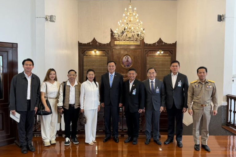 ให้การต้อนรับและแสดงความยินดีเบื้องต้นกับทีมงานผู้ชนะการเลือกตั้งนายก อบจ.เชียงรายที่แวะมาสวัสดีปีใหม่และตรุษจีนที่ มท.