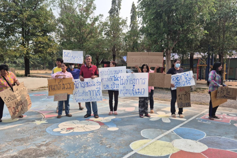 ผู้ปกครองนักเรียนรวมตัวชูป้ายขับไล่ผู้อำนวยการพร้อมกัน 2 โรงเรียน