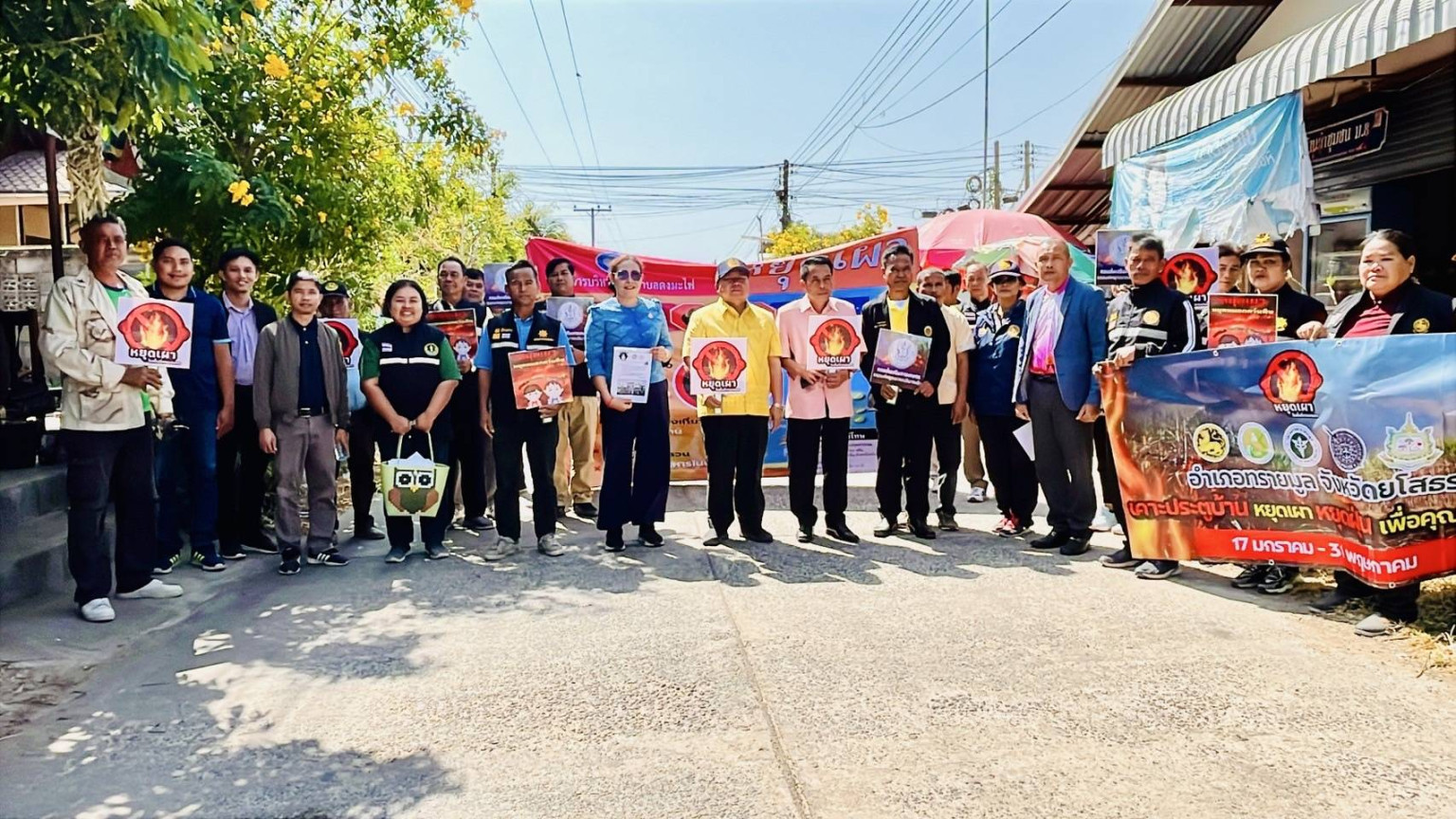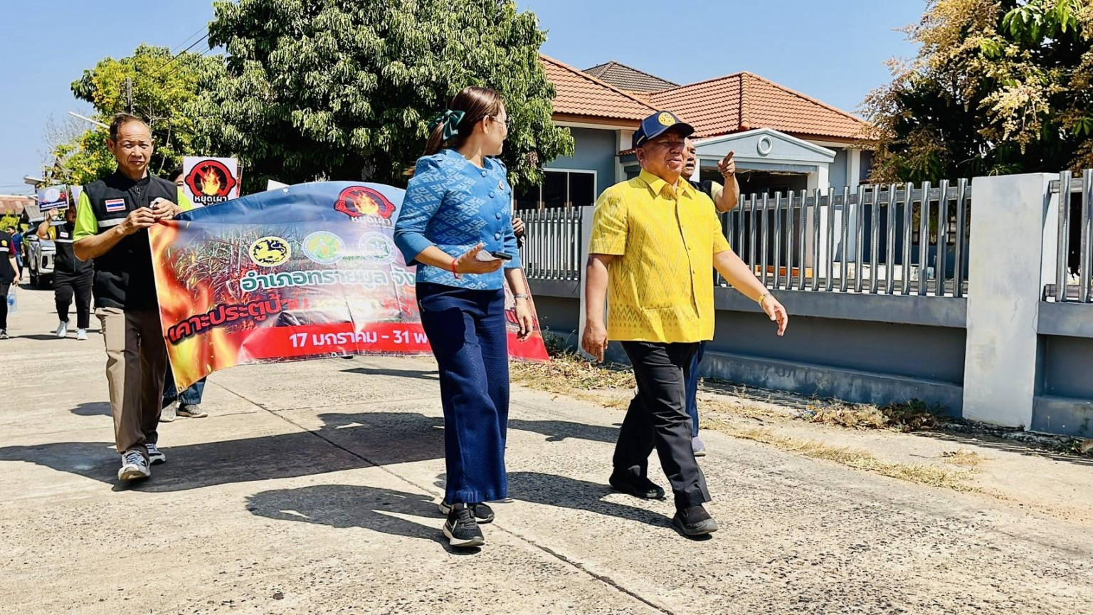 ผู้สื่อข่าวรายงาน ว่า เมื่อวันที่ 4 ก.พ.68 นายประเวช แสนทวีสุข นายอำเภอทรายมูล จังหวัดยโสธทีมเดินหน้ารณรงค์สร้างการรับรู้การหยุดเผาในพื้นที่ป่าสงวนแห่งชาติและพื้นที่การเกษตร เพื่อป้องกันและแก้ไขปัญหามลพิษจากฝุ่นละอองขนาดเล็ก PM 2.5 ซึ่งเป็นพื้นที่สีแดง หมู่ 1,8,10 ตำบลดงมะไฟ อำเภอทรายมูล จังหวัดยโสธร โดยกิจกรรม "เคาะประตูบ้าน หยุดเผา หยุดฝุ่น เพื่อคุณ เพื่อเรา"