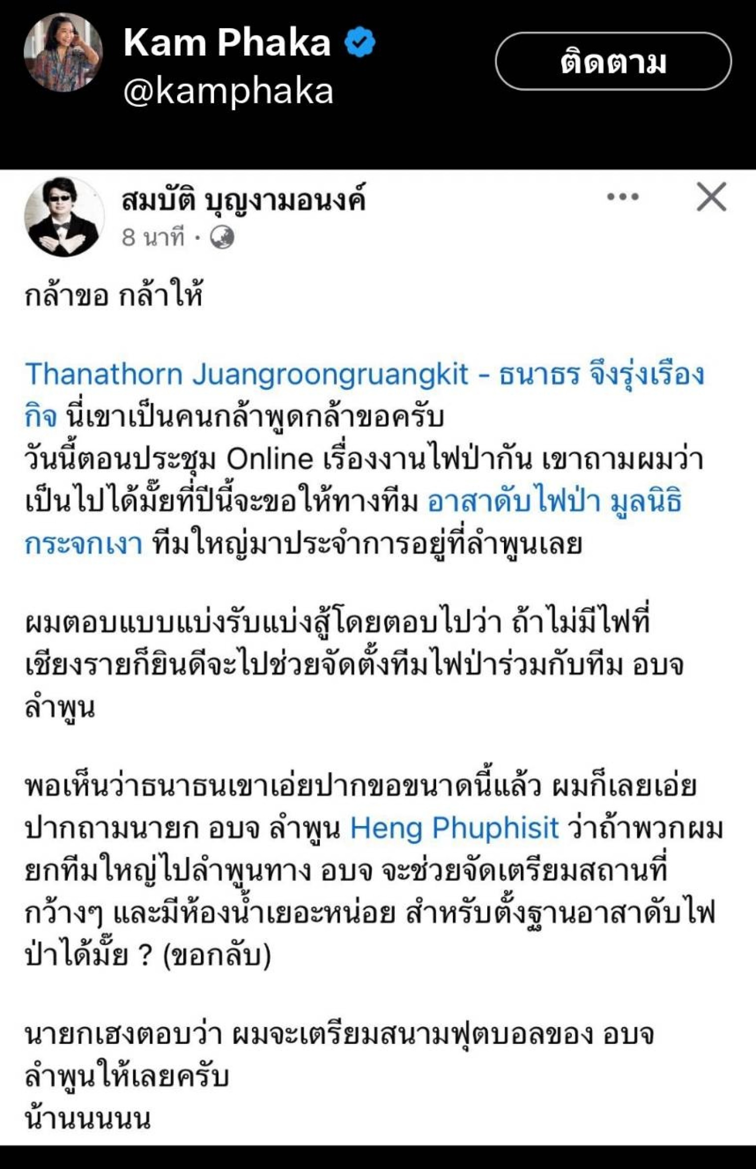 ส่วนธนาธร ส่งคนเป็นนายก อบจ. ลำพูนแล้วไปขอแรงขอทรัพยากรมูลนิธิกระจกเงาอีกที”