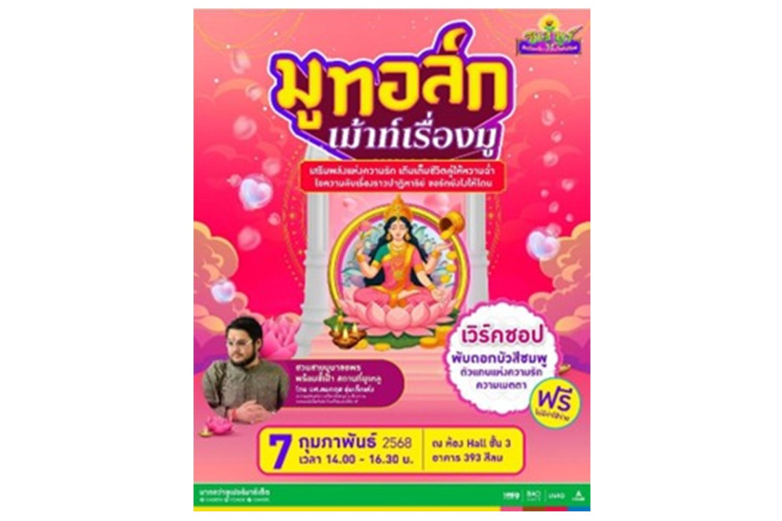 ซีเจ มอร์ (CJ MORE) เตรียมต้อนรับเดือนแห่งความรักด้วยกิจกรรมสุดพิเศษ "MU TALK เม้าท์เรื่องมู : ไขความรักสายมู กับพระแม่ลักษมี เทพีแห่งความรักและความงาม" ภายใต้แคมเปญ ‘ซีเจมูร์ ช้อปโอมเพี้ยงดวงเปรี้ยงรับปีใหม่’ งานนี้จัดขึ้นเพื่อเปิดมุมมองเรื่องความรักในสายมู ไม่ว่าจะเป็นคนโสดที่กำลังมองหาคู่ หรือคนมีคู่ที่อยากเติมเต็มความสัมพันธ์ให้แน่นแฟ้นยิ่งขึ้น ภายในงานพบกับ 'ผศ.คมกฤช อุ่ยเต็กเค่ง' ผู้เชี่ยวชาญด้านศาสนาและปรัชญา ที่จะมาแชร์เคล็ดลับความรักผ่านพลังศักดิ์สิทธิ์ของ ‘พระแม่ลักษมี’ เพื่อเสริมดวงและพลังบวกให้ชีวิตรัก นอกจากนี้ยังมีเวิร์กชอป "พับดอกบัวสีชมพู" ซึ่งเป็นตัวแทนแห่งความรักและเมตตา สำหรับถวายพระแม่ลักษมี เพื่อเสริมดวงความรักและดึงดูดคู่ครองที่ดี นำโดย 'ศิริภัสสร โชควศิน' วิทยากรผู้เชี่ยวชาญจากโรงเรียนช่างฝีมือในวัง (หญิง) โดยงานจะจัดขึ้นในวันศุกร์ที่ 7 กุมภาพันธ์ 2568 เวลา 14:00 - 16:30 น. ณ ห้อง Hall ชั้น 3 อาคาร 393 สีลม งานนี้เข้าร่วมฟรี สำหรับลูกค้าสมาชิกซีเจ มอร์ จำนวน 50 ท่าน เท่านั้น ใครยังไม่เป็นสมาชิก คลิกที่นี่เพื่อสมัครด่วน! https://bit.ly/4hkrtIh และสามารถลงทะเบียนสำรองที่นั่งได้ที่ https://forms.gle/SoskVA6FbrXfJm8c7 แล้วมาสัมผัสพลังแห่งความรัก และเป็นลูกรักของพระแม่ลักษมีไปด้วยกัน!