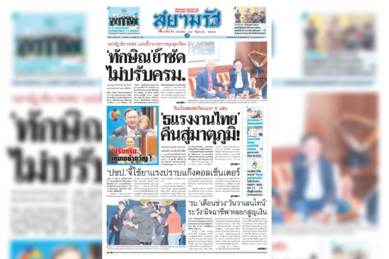 หน้า 1 หนังสือพิมพ์สยามรัฐรายวัน ฉบับวันจันทร์ที่ 10 กุมภาพันธ์ 2568