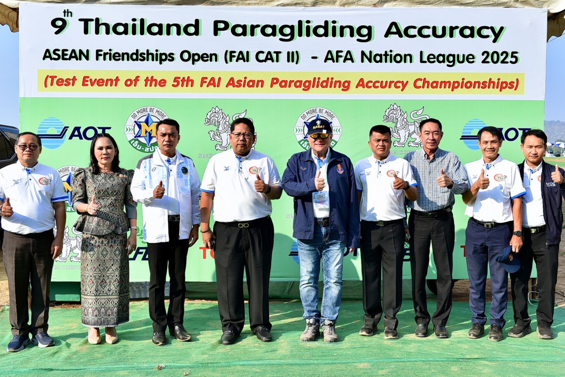 สมาคมกีฬาทางอากาศและการบินแห่งประเทศไทย ในพระบรมราชูปถัมภ์ จัดการแข่งขันร่มร่อนบินลงเป้าแม่นยำชิงแชมป์แห่งประเทศไทยและนานาชาติ สานสัมพันธ์อาเซียน ครั้งที่ 9 - เอเอฟเอ เนชั่นลีก (ทดสอบสนามร่มร่อนชิงแชมป์เอเชีย ครั้งที่ 5) ณ สนามกีฬาทางอากาศชั่วคราวผาตากเสื้อ อำเภอสังคม จังหวัดหนองคาย ระหว่างวันที่ 6 - 10 กุมภาพันธ์ 2568