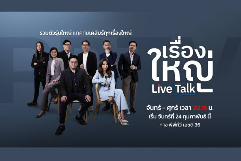 พีพีทีวี เอชดี ช่อง 36 เตรียมเขย่าวงการข่าวระลอกใหม่ ส่งรายการคุยข่าว "เรื่องใหญ่ Live Talk" ยึดผังช่วงเวลาไพร์มไทม์ 1 ชั่วโมงเต็ม ทุกวันจันทร์-ศุกร์ เวลา 20.15 – 21.15 น. ดำเนินรายการโดย เอกพร ศรีสุขทวีรัตน์ และ สุชาดา นิ่มนวล จะมาร่วมพูดคุยแลกเปลี่ยนมุมมองข่าวสไตล์เป็นกันเอง กับคนข่าวระดับแถวหน้า