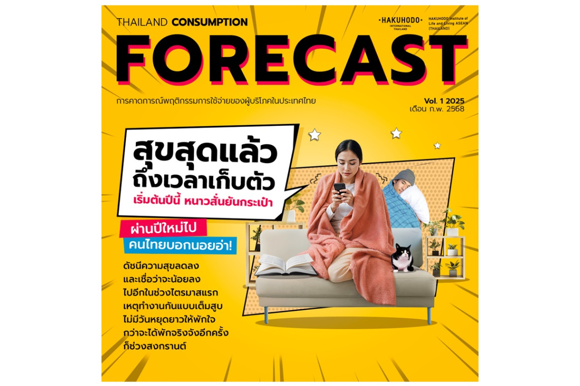 สถาบันวิจัยความเป็นอยู่ฮาคูโฮโด อาเซียน (ประเทศไทย) หรือ Hakuhodo Institute of Life and Living ASEAN (THAILAND) เผยผลสำรวจฉบับแรกในเดือนกุมภาพันธ์ ประจำปี พ.ศ.2568 ว่า เมื่อผ่านพ้นช่วงเทศกาลปีใหม่ ดัชนีความสุขกลับลดลงซึ่งสัมพันธ์กับแนวโน้มการใช้จ่ายในเดือนกุมภาพันธ์ที่ลดลงเช่นกัน ผลกระทบนี้มาจากความกังวลเรื่องเศรษฐกิจของประเทศไทยที่ยังคงฝืดเคืองอย่างต่อเนื่อง คนไทยเริ่มระมัดระวังการใช้จ่ายมากขึ้น รัดเข็มขัดเก็บเงินสะสมเพื่อสำรองในกรณีฉุกเฉิน ตั้งหน้าตั้งตาทำงานแบบไม่มีวันหยุดยาวให้พักกายพักใจ