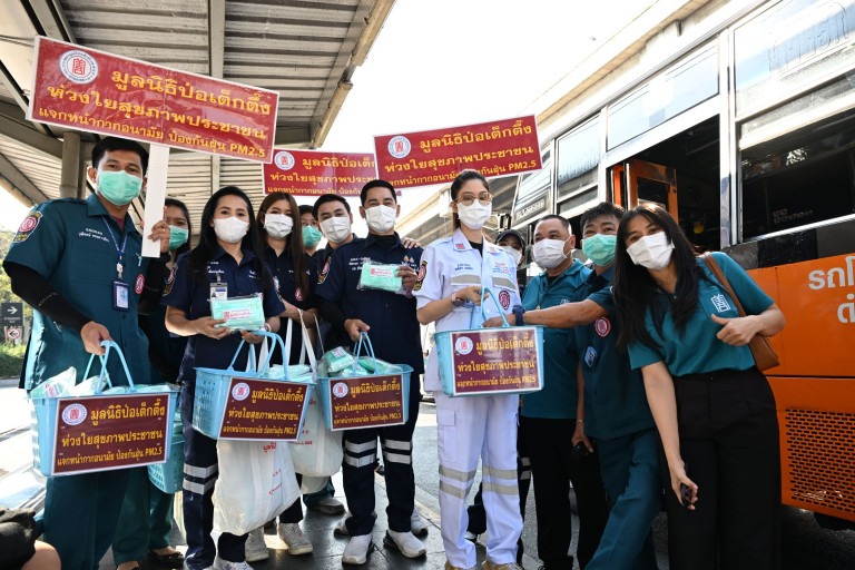 วันที่ 15 ก.พ.68 ที่มูลนิธิป่อเต็กตึ๊ง โดย นางศิริพร กระจ่างหล้า ผู้จัดการฝ่ายสังคมสงเคราะห์ มอบหมายให้ นายรัชพร ประสงค์ทรัพย์ หัวหน้าแผนกสาธารณภัย นายชุมพล บุญภักดี ผู้ช่วยหัวหน้าแผนกสาธารณภัย และนายรุ่งเพชร์ ศรีสุวรรณ ผู้ช่วยหัวหน้าแผนกอาสาสมัคร นำทีมเจ้าหน้าที่แผนกสาธารณภัย แผนกส่งเสริมการศึกษาและอาชีพ แผนกบรรเทาสาธารณภัยฯ และแผนกอาสาสมัคร ลงพื้นที่แจกจ่ายหน้ากากอนามัยแก่ประชาชนที่สัญจรขึ้นรถโดยสารประจำทาง ตลาด และสถานที่ที่ มีผู้คนเดินทางสัญจรเป็นจำนวนมากในพื้นที่ จังหวัดนนทบุรี สมุทรปราการ ปทุมธานี สมุทรสาคร ฉะเชิงเทรา และนครปฐม รวม 6 จังหวัด รวมจำนวนหน้ากากอนามัย 6,000 แพ็ก (150,000 ชิ้น) คิดเป็นมูลค่าทั้งสิ้น 144,450 บาท โดยมีอาสาสมัครศิลปิน อาทิ นางสาวพรชดา วราพชระ (มะเหมี่ยว-พรชดา) นางสาวสุชานุช ธรรมวงค์ (แพม-สุชานุช) นางสาวอธิชา เทศขำ (เมย์-อธิชา) นายภัทรพล แก้วสกุณี (เค-ภัทรพล) นางสาวพัชรมัย บุญเลิศกุล (แพรว-พัชรมัย) นายขวัญชัย เย็นพายัพ (เจี๊ยวจ๊าว เชิญยิ้ม) นางสาวเบญญาภา จันใจ (ขิม) นางสาวพิมพ์ลภัส เทียนรุ่งเรือง (นุ้ย) ร่วมลงพื้นที่แจกจ่าย ซึ่งมีประชาชนเข้ารับหน้ากากอนามัยเป็นจำนวนมาก(เมื่อ14 กุมภาพันธ์ พ.ศ. 2568) โดยเมื่อเดือนมกราคม 2568 ที่ผ่านมา ในช่วงวิกฤตมหันตภัยกรุงเทพมหานครและจังหวัดใกล้เคียงจมฝุ่นพิษ [PM2.5 เกินมาตรฐาน] มูลนิธิฯ ได้จัดทีมลงพื้นที่แจกจ่ายหน้ากากอนามัยในพื้นที่ 10 เขต กรุงเทพมหานคร รวม 10,000 แพ็ก (250,000 ชิ้น) คิดเป็นมูลค่าทั้งสิ้น 240,750 บาท รวมมูลค่าการดำเนินการลงพื้นที่แจกจ่ายหน้ากากอนามัย 10 เขต กรุงเทพมหานคร และ 6 จังหวัดใกล้เคียงกรุงเทพฯ ทั้งสิ้น 385,200 บาท (สามแสนแปดหมื่นห้าพันสองร้อยบาทถ้วน) ทั้งนี้ มูลนิธิฯ ยังคงติดตามสถานการณ์อย่างต่อเนื่อง เพื่อประเมินและเข้าให้ความช่วยเหลือผู้ประสบภัยด้านต่าง ๆ ต่อไป