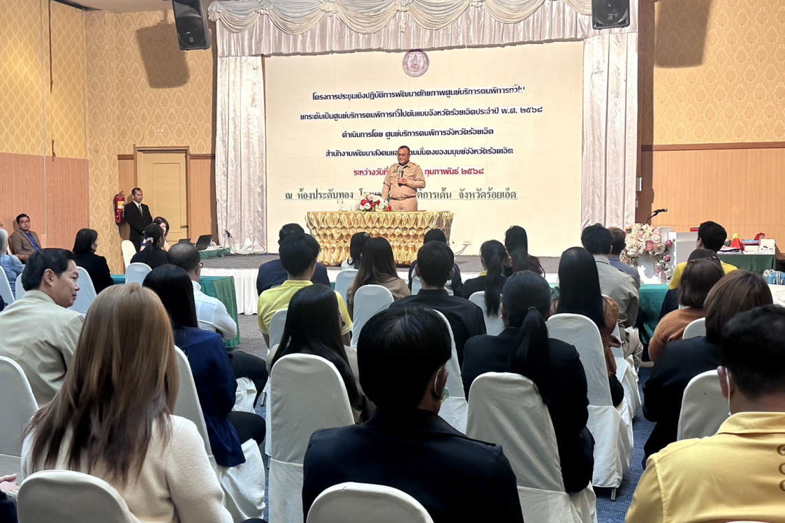 ผู้สื่อข่าวรายงาน ว่า เมื่อวันที่ 17 ก.พ. 68 เวลา 10.00 น. นายชัชวาลย์ เบญจสิริวงศ์ ผู้ว่าราชการจังหวัดร้อยเอ็ด เป็นประธานเปิดโครงการประชุมเชิงปฏิบัติการพัฒนาศักยภาพศูนย์บริการคนพิการทั่วไป ยกระดับเป็นศูนย์บริการคนพิการต้นแบบ ประจำปีงบประมาณ พ.ศ. 2568 โดยมี นางวนิดา สมานมิตร พัฒนาสังคมและความมั่นคงของมนุษย์จังหวัดร้อยเอ็ด พร้อมด้วย คณะกรรมการศูนย์บริการคนพิการทั่วไป และเจ้าหน้าที่ที่เกี่ยวข้องร่วม ณ ห้องประดับทอง โรงแรมเพชรรัชต์การ์เด้น ตำบลเหนือเมือง อำเภอเมืองร้อยเอ็ด จังหวัดร้อยเอ็ด