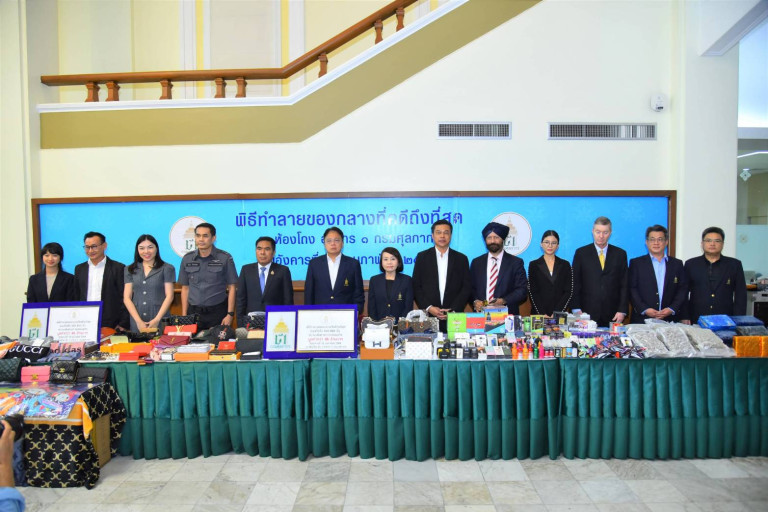 วันที่ 18 กุมภาพันธ์ 2568ที่ กรมศุลกากรจัดพิธีทำลายของกลางที่คดีถึงที่สุดแล้วไปทำลาย รวมทั้งสิ้น 602,600 ชิ้น คิดเป็นมูลค่าความเสียหายทางเศรษฐกิจกว่า 46 ล้านบาท โดยมีนายธีรัชย์ อัตนวานิช อธิบดีกรมศุลกากร เป็นประธานฯ ร่วมด้วย นางกิจจาลักษณ์ ศรีนุชศาสตร์ ที่ปรึกษาด้านพัฒนาระบบสิทธิประโยชน์ทางศุลกากร นายดิเรก คชารักษ์ รองอธิบดีกรมศุลกากร นายภาคภูมิ เลิศวัฒนารักษ์ ผู้อำนวยการกองสืบสวนและปราบปราม กรมศุลกากร นายพีรกานต์ บูรณากาญจน์ ผู้อำนวยการสำนักงานศุลกากรกรุงเทพ กรมศุลกากร นายกฤดิพรรธน์ สิงห์อุบลปิติกุล ผู้อำนวยการสำนักงานศุลกากรตรวจสินค้าท่าอากาศยานสุวรรณภูมิ พร้อมด้วย นายอาวุธ วงศ์สวัสดิ์ รองอธิบดีกรมทรัพย์สินทางปัญญา และ ร.ต.อ.วิษณุ ฉิมตระกูล รองอธิบดีกรมสอบสวนคดีพิเศษ ร่วมพิธี