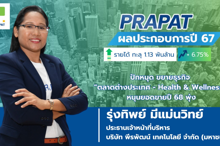 เมื่อวันที่ 18 ก.พ. 68 นางสาวรุ่งทิพย์ มีแม่นวิทย์ ประธานเจ้าหน้าที่บริหาร บริษัท พีรพัฒน์ เทคโนโลยี จำกัด (มหาชน) หรือ PRAPAT เปิดเผยผลการดำเนินงานปี 2567 มีรายได้รวม 1,133.98 ล้านบาท เพิ่มขึ้น 6.75% เมื่อเทียบกับงวดเดียวของปีก่อน โดยรายได้ที่เพิ่มขึ้นมาจากรายได้การขาย จำนวน 48.72 ล้านบาท เพิ่มขึ้น 5.67% โดยเฉพาะในกลุ่มผลิตภัณฑ์ด้านครัวและผลิตภัณฑ์แม่บ้านและทำความสะอาดพื้นที่เติบโตโดดเด่น รวมถึงรายได้จากการให้เช่าและบริการ จำนวน 23 ล้านบาท เพิ่มขึ้น 11.36% จากการให้เช่าเครื่องล้างจาน ส่วนกำไรสุทธิอยู่ที่ 50.24 ล้านบาท ใกล้เคียงกับปีก่อนหน้า