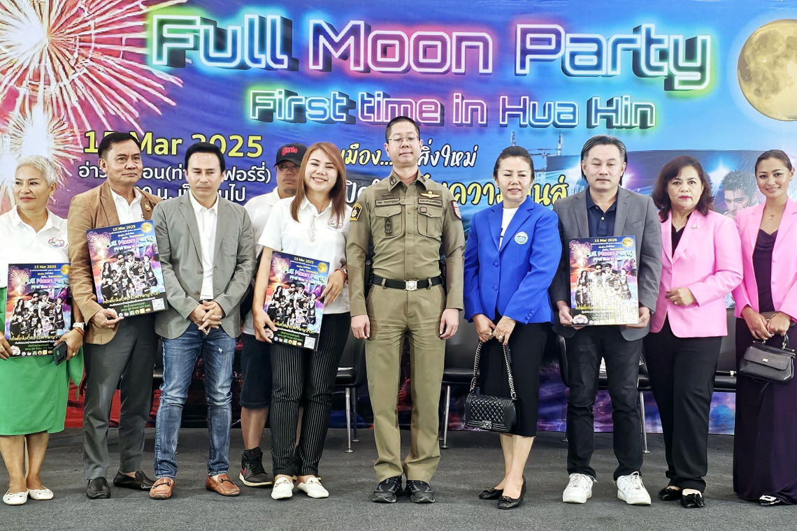 เมื่อวันที่ 18 ก.พ.68 ที่ชั้น 3 ศูนย์การค้ามาร์เก็ตวิลเลจ หัวหิน จ.ประจวบฯ ชมรมผู้ประกอบการร้านอาหาร ผับ บาร์ อ.หัวหิน โดย นายณัฐฎวนัย จารุเพ็ง นายนิติพัฒน์ วรกิจเรืองจินดา และ น.ส.นงนภัส มูรติ พร้อมด้วย พ.ต.ท.วรท กรุงกาญจนา รอง ผกก.ป.สภ.หัวหิน นางศณิศา ปลั่งศรีสกุล ศรีอาจ ตัวแทนสมาคมธุรกิจการท่องเที่ยวหัวหิน/ชะอำ นายธีรยุทธ สุขลาภ ผช.ผู้จัดการทั่วไป ศูนย์การค้ามาร์เก็ตวิลเลจ หัวหิน ร่วมในการแถลงข่าวการจัดงาน “Full Moon Party ครั้งที่ 1" ในวันที่ 15 มี.ค.68 ตั้งแต่เวลา 18.00-24.00 น. ที่บริเวณหน้าชายหาดหัวดอน (ท่าเรือเฟอร์รี่) หมู่บ้านเขาตะเกียบ อ.หัวหิน ท่ามกลางแขกผู้มีเกียรติจำนวนมากร่วมรับฟัง