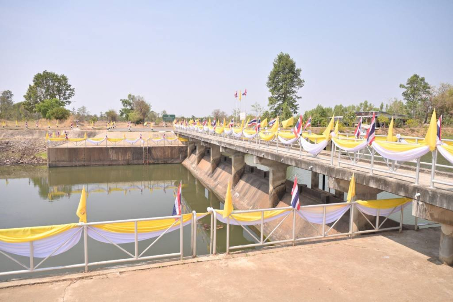 ในการนี้ นายองอาจ แสนอุบล ผู้อำนวยการโครงการชลประทานมุกดาหาร รักษาราชการแทน ผู้อำนวยการโครงการชลประทานอำนาจเจริญ ได้บรรยายสรุปผลการดำเนินโครงการฝายห้วยยางฯ โดยเมื่อวันที่ 11 มิถุนายน พ.ศ. 2560 พระบาทสมเด็จพระเจ้าอยู่หัว ทรงพระกรุณาโปรดเกล้าฯ รับไว้เป็นโครงการพระราชดำริ ตามที่นายอุดม เด่นดวง ราษฎรบ้านนาเมือง ตำบลกุดปลาดุก อำเภอเมืองอำนาจเจริญ จังหวัดอำนาจเจริญ ขอพระราชทานโครงการฝายห้วยยาง บริเวณพื้นที่บ้านนาเมือง ตำบลกุดปลาดุก อำเภอเมืองอำนาจเจริญ จังหวัดอำนาจเจริญ เพื่อช่วยเหลือราษฎรที่ประสบความเดือดร้อนจากการขาดแคลนน้ำสำหรับการอุปโภคบริโภคและทำการเกษตรในฤดูแล้ง ซึ่งกรมชลประทานได้ดำเนินก่อสร้างฝายห้วยยางฯ แล้วเสร็จเมื่อปี 2562 มีลักษณะโครงการเป็นฝายคอนกรีตเสริมเหล็ก แบบสันหยัก ความกว้าง 13.20 เมตร ความยาวสันหยัก 55.00 เมตร ความสูง 2.00 เมตร พร้อมขุดลอกลำห้วยยาง ยาว 1,600 เมตร สามารถเก็บกักน้ำได้ประมาณ 124,000 ลูกบาศก์เมตร เพื่อใช้สำหรับการอุปโภคบริโภค การเกษตร และการเลี้ยงสัตว์ ราษฎรได้รับประโยชน์ 183 ครัวเรือน ประชากร 410 คน และสนับสนุนพื้นที่การเพาะปลูก จำนวน 1,750 ไร่