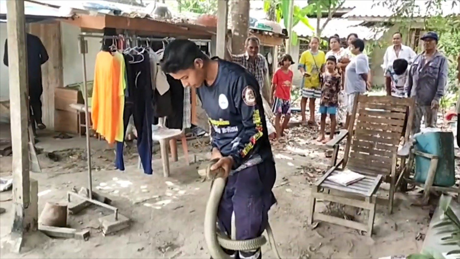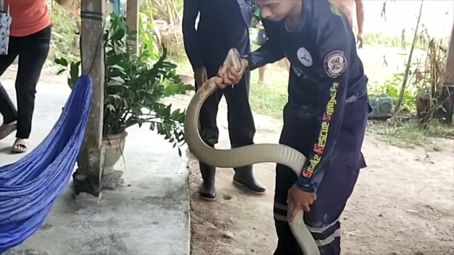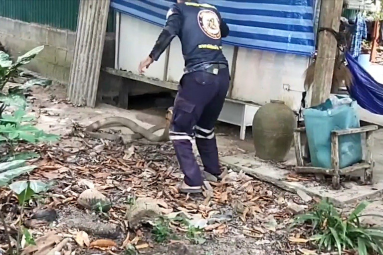 วันที่ 24 กุมภาพันธ์ 2568 ผู้สื่อข่าวรายงาน ว่า นายสมนึก  อายุ 69 ปี อยู่บ้าน หมู่ 6 ต.ประกอบ อ.นาทวี จ.สงขลา นั่งอยู่บนบ้าน ก็ต้องตกใจเมื่อสายตามองไปเห็นงูจงอางยักษ์ นอนขดตัวอยู่ในโพรงใต้พื้นบ้าน หลังหายตกใจ จึงรีบประสานไปยังนายทวีศักดิ์ บุญเศษ เจ้าหน้าที่ทีอสรพิษวิทยาภาคใต้ เพื่อขอให้นำอุปกรณ์ในการจับงู มาช่วยจับงูจงอางยักษ์ให้ด้วย