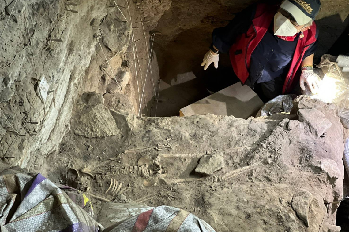 อธิบดีกรมศิลปากร กล่าวอีกว่า เมื่อทำการขุดค้นจนถึงระดับความลึกประมาณ 2 เมตรจากพื้นถ้ำ ได้พบเรื่องที่น่าตื่นเต้นอย่างมากเมื่อ นักโบราณคดี ได้พบโครงกระดูกมนุษย์  จำนวน 1 โครง  ตั้งชื่อว่าน้องปังปอน เมื่อพิจารณาฟันกรามแท้ซี่ที่ 1 ที่ขึ้นแล้ว พบเป็นโครงกระดูกเด็ก ในช่วงอายุประมาณ 6 – 8 ปี  โครงกระดูกหันศรีษะไปทางทิศตะวันตกเฉียงใต้ นอนหงายเหยียดยาว สันนิษฐานว่าเป็นการประกอบพิธีกรรม มีการห่อศพด้วยเส้นใยบางอย่าง และหินทับวางบนโครงกระดูกนี้ในส่วนสำคัญทั้งกะโหลก หน้าอกและดินสีแดง เรียกว่าดินเทพ เชื่อได้ว่า มีพิธีกรรมกับศพนี้ ไม่ใช่การเผา แต่เพื่อป้องกันทำลายของสัตว์ หรือ ดับกลิ่น   จากนั้น ได้คัดเลือกตัวอย่างถ่านและเปลือกหอยบริเวณนั้น จำนวน 5 ตัวอย่าง ส่งไปหาค่าอายุด้วยวิธี Accelerator Mass Spectrometer(AMS) ณ ห้องปฏิบัติการทางวิทยาศาสตร์ BETA ANALYTIC Inc. สหรัฐอเมริกา ซึ่งผลการกำหนดอายุทำให้ทราบว่าที่ถ้ำดินนี้ มีคนเข้ามาอยู่อาศัยและใช้พื้นที่อย่างต่อเนื่อง ตั้งแต่ประมาณ 29,000 ปีขึ้นมาจนถึงประมาณ 11,000 ปี ส่วนโครงกระดูกมนุษย์ คาดว่า มีอายุเก่าแก่กว่านั้น เนื่องจากพบอยู่ในระดับความลึกต่ำลงไปที่ประมาณ 2 เมตร อย่างไรก็ตามขณะนี้อยู่ในระหว่างการตรวจหาค่าอายุในเชิงลึกเพิ่มเติมต่อไป“หลักฐานทางโบราณคดีที่ทับถมอย่างยาวนานในถ้ำดินนั้น แสดงถึงร่องรอยของกลุ่มคนดั้งเดิมตั้งแต่สมัยหินเก่าอายุก่อน 12,000 ปี สืบเนื่องมาจนถึงกลุ่มโหบินเนียน ที่ดำรงชีวิตด้วยการหาพืชป่า ล่าสัตว์ป่ามาเป็นอาหาร  และที่น่าสนใจมากที่สุด คือ หลักฐานของโครงกระดูกมนุษย์ที่มีอายุมากกว่า 29,000 ปี นับเป็นโครงกระดูกมนุษย์ มีอายุเก่าแก่ที่สุดในประเทศไทยและยังพบอยู่ในสภาพสมบูรณ์ที่สุดด้วย จัดเป็นมนุษย์สมัยหินเก่า (Palaeolithic Period) เทียบได้กับยุคทางธรณีกาลคือ สมัยไพลสโตซีน (ยุคน้ำแข็ง) ตอนปลาย (125,000 – 11,700 ปีที่แล้ว) ทั้งนี้คาดหวังจะมีการศึกษาวิจัยทางโบราณคดีและศาสตร์ที่เกี่ยวข้องเพิ่มขึ้นในอนาคต จะทำให้ภาพเรื่องราวของคนก่อนประวัติศาสตร์ในบริเวณพื้นที่ชายฝั่งอ่าวไทยกระจ่างชัดเจนมากขึ้น และอาจเป็นจิ๊กซอร์ตัวหนึ่งที่ช่วยตอบคำถามเกี่ยวกับคน สังคม วัฒนธรรม และสภาพแวดล้อมโบราณของคนยุคแรกเริ่มในประเทศไทยและในเอเชียตะวันออกเฉียงใต้ ” อธิบดีกรมศิลปากร กล่าว