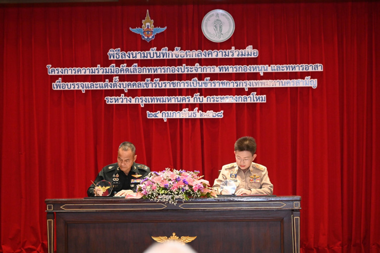 สำหรับวันนี้ กรุงเทพมหานคร กับ กระทรวงกลาโหม ได้ลงนามบันทึกข้อตกลงความร่วมมือ (MOA) โครงการความร่วมมือคัดเลือกทหารกองประจำการ ทหารกองหนุน และทหารอาสาเพื่อบรรจุและแต่งตั้งบุคคลเข้ารับราชการเป็นข้าราชการกรุงเทพมหานครสามัญ เพื่อส่งเสริมและสนับสนุนให้ทหารกองประจำการ ทหารกองหนุน และทหารอาสาในสังกัดกระทรวงกลาโหม เข้ารับราชการเป็นข้าราชการกรุงเทพมหานครสามัญ รวมถึงเป็นการสร้างเครือข่ายความร่วมมือระหว่างหน่วยงานภาครัฐในการพัฒนาความรู้และทักษะของทหารฯ ให้สอดคล้องกับความต้องการของกรุงเทพมหานคร ซึ่งกรุงเทพมหานครและกระทรวงกลาโหมจะร่วมกันกำหนดแนวทางและดำเนินการคัดเลือกตามหลักเกณฑ์ที่กำหนด รวมทั้งสนับสนุนบุคลากร เครื่องมือ กลไก งบประมาณ และหรือทรัพยากรในการดำเนินการโครงการฯ ภายใต้กฎหมาย ระเบียบ ข้อบัญญัติ และคำสั่งที่เกี่ยวข้อง