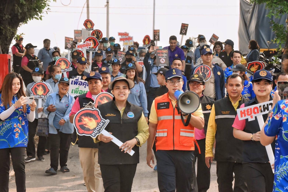 วันที่ 24 ก.พ. 68 นายกองตรี ดร.ภาณุพงศ์ ศิริ นายอำเภอบางปะอิน ร่วมกับ นางสาวสรัญญา ลีวัฒนะ นายกเทศมนตรี เทศบาลตำบลบางกระสั้น กำนัน - ผู้ใหญ่บ้านฯลฯ ตำบลบางกระสั้น นำส่วนราชการทุกภาคส่วน ร่วมกับ อสม. ประชาชนในพื้นที่ ร่วมรณรงค์ประชาสัมพันธ์ ( Kick Off) นั่งรถแห่ เคาะประตูบ้าน “หยุดเผา หยุดฝุ่น เพื่อคุณเพื่อเรา” ห้ามเผาในที่โล่งแจ้งโดยเด็ดขาด